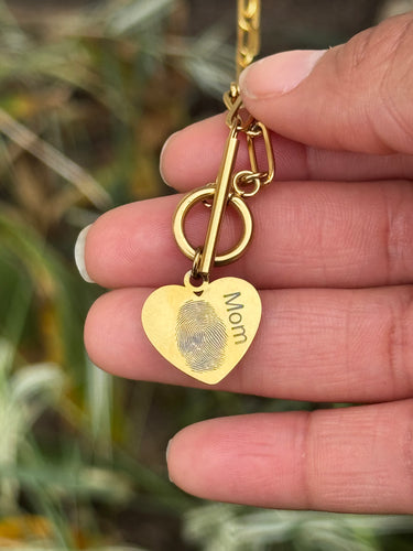 Personalized Real Fingerprint Necklace, Custom Heart Charm with Name, Engraved Fingerprint Handwriting