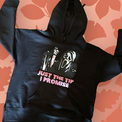 Just The Tip I Promise Shirt, Horror Movie Halloween Scary Hoodie, Just The Tip I Promise