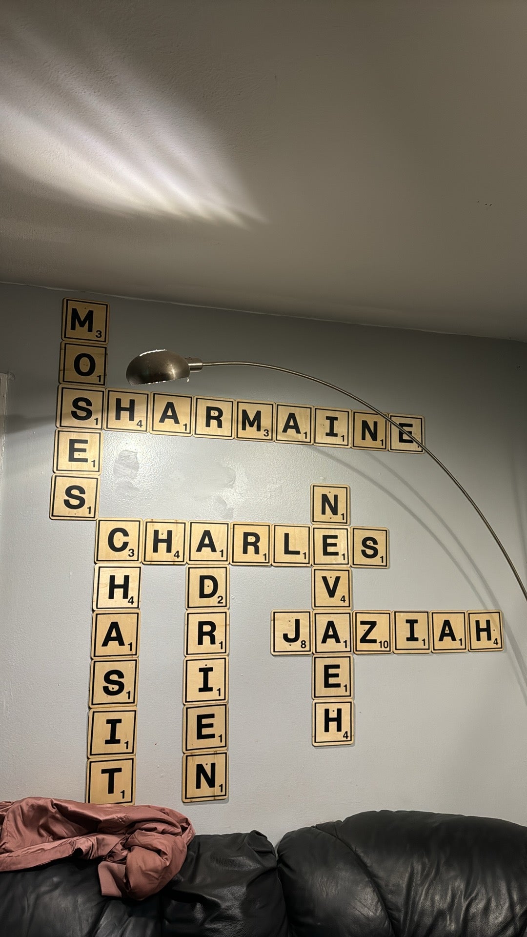We would also provide the layout of the names for your Scrabble wall.