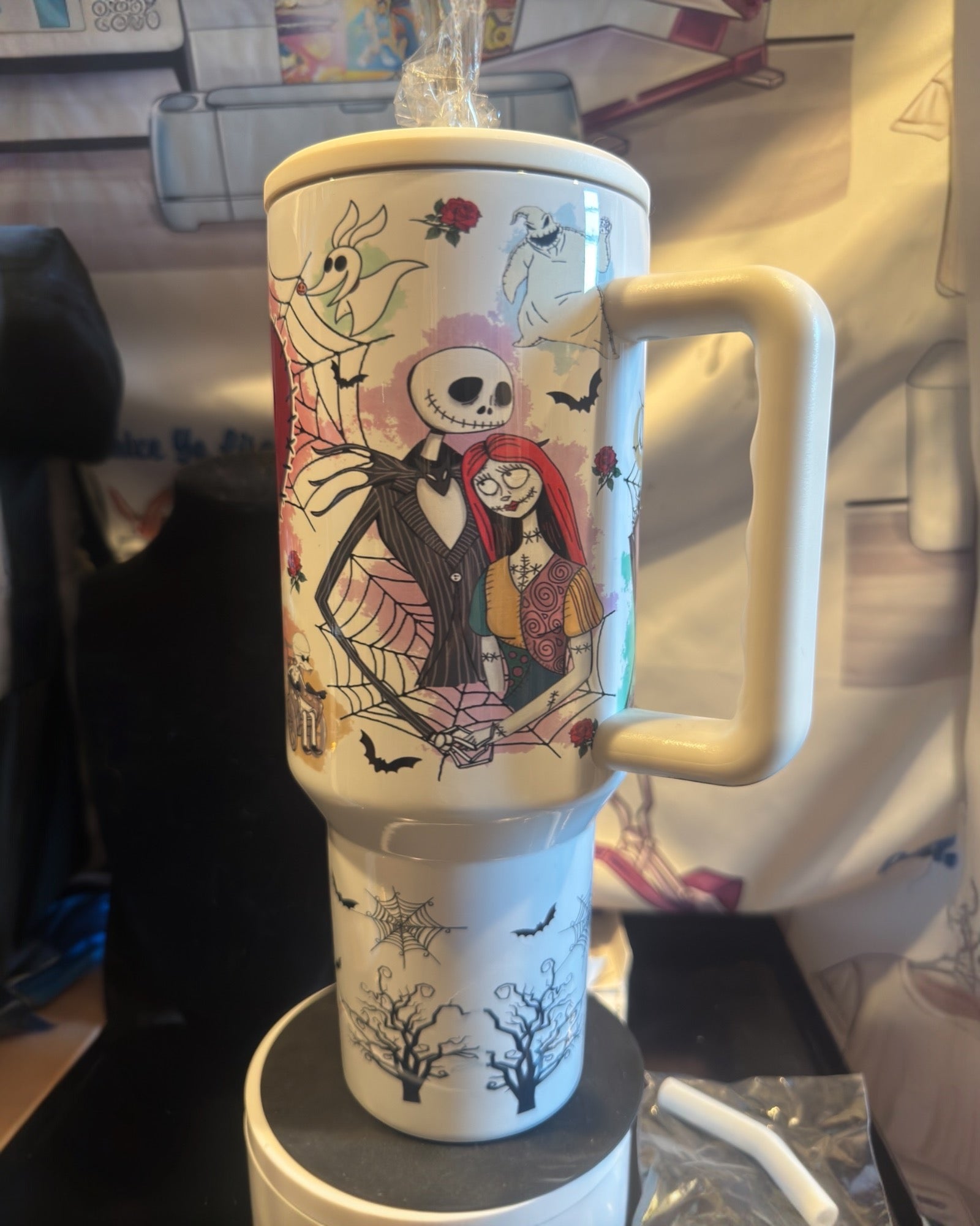 Handle and Straw Keeps Cold for 34 Hours Leakproof Double Wall Vacuum Insulated 40 oz Stainless Steel. With a white stew cover. if you would like to add pictures instead of characters please note max upload of pictures are 5