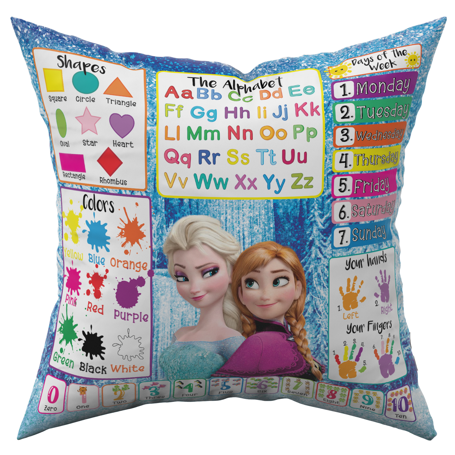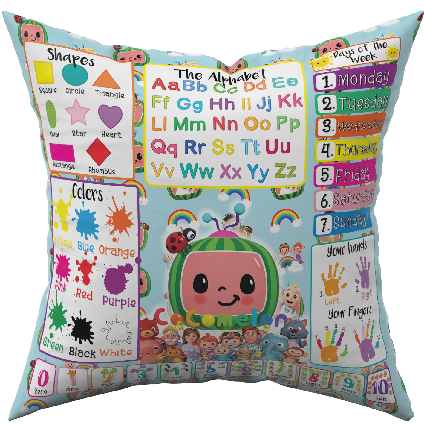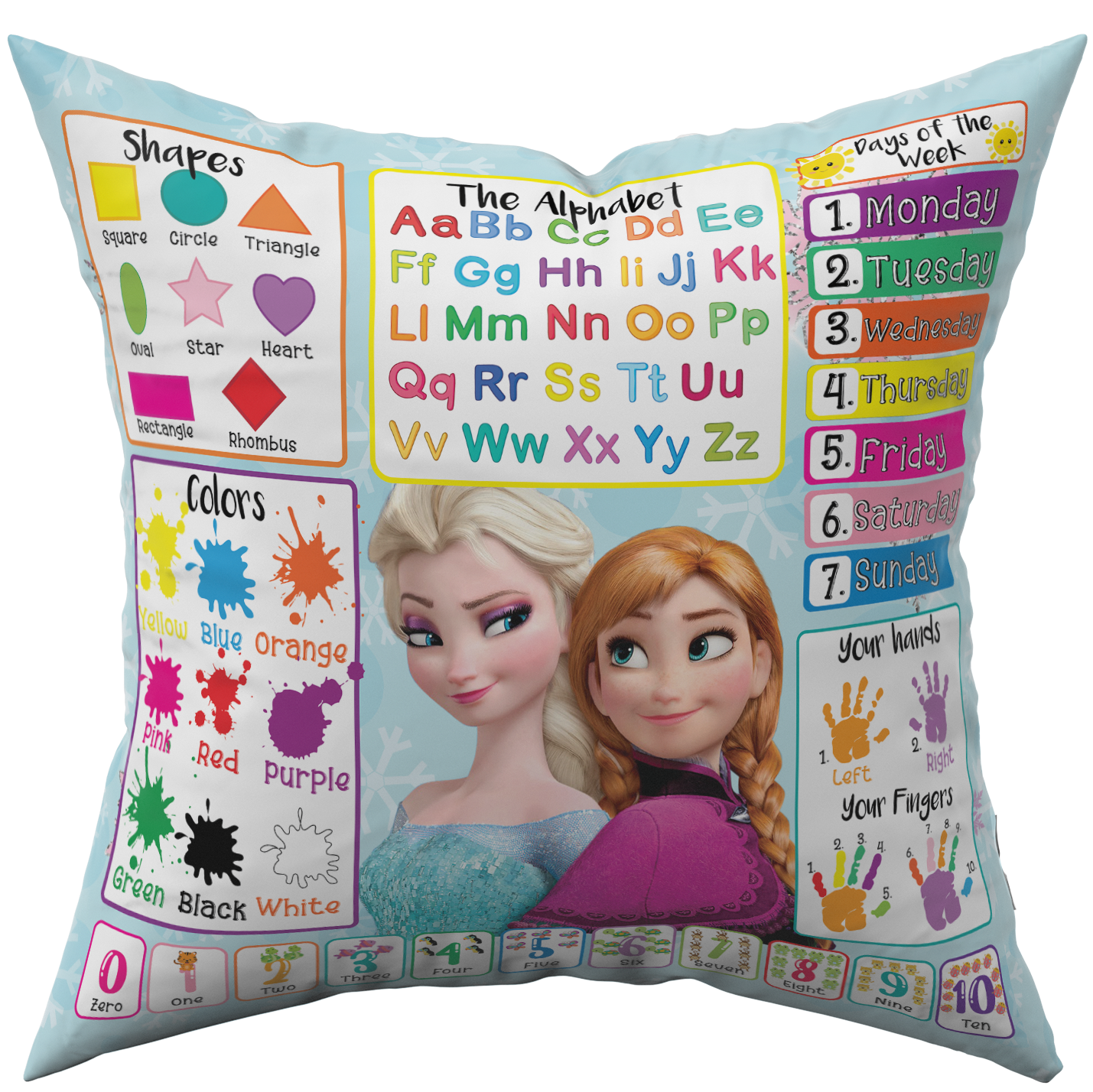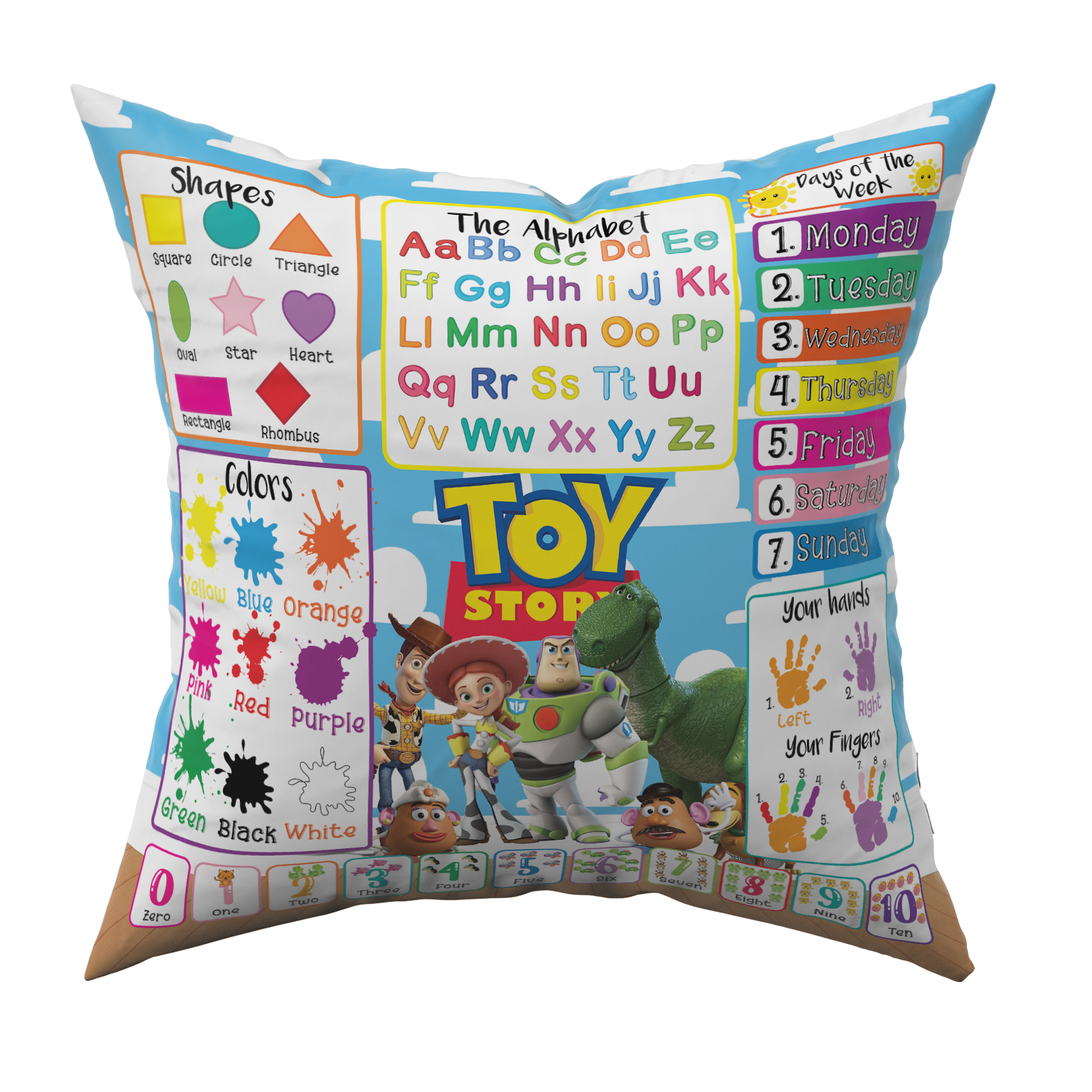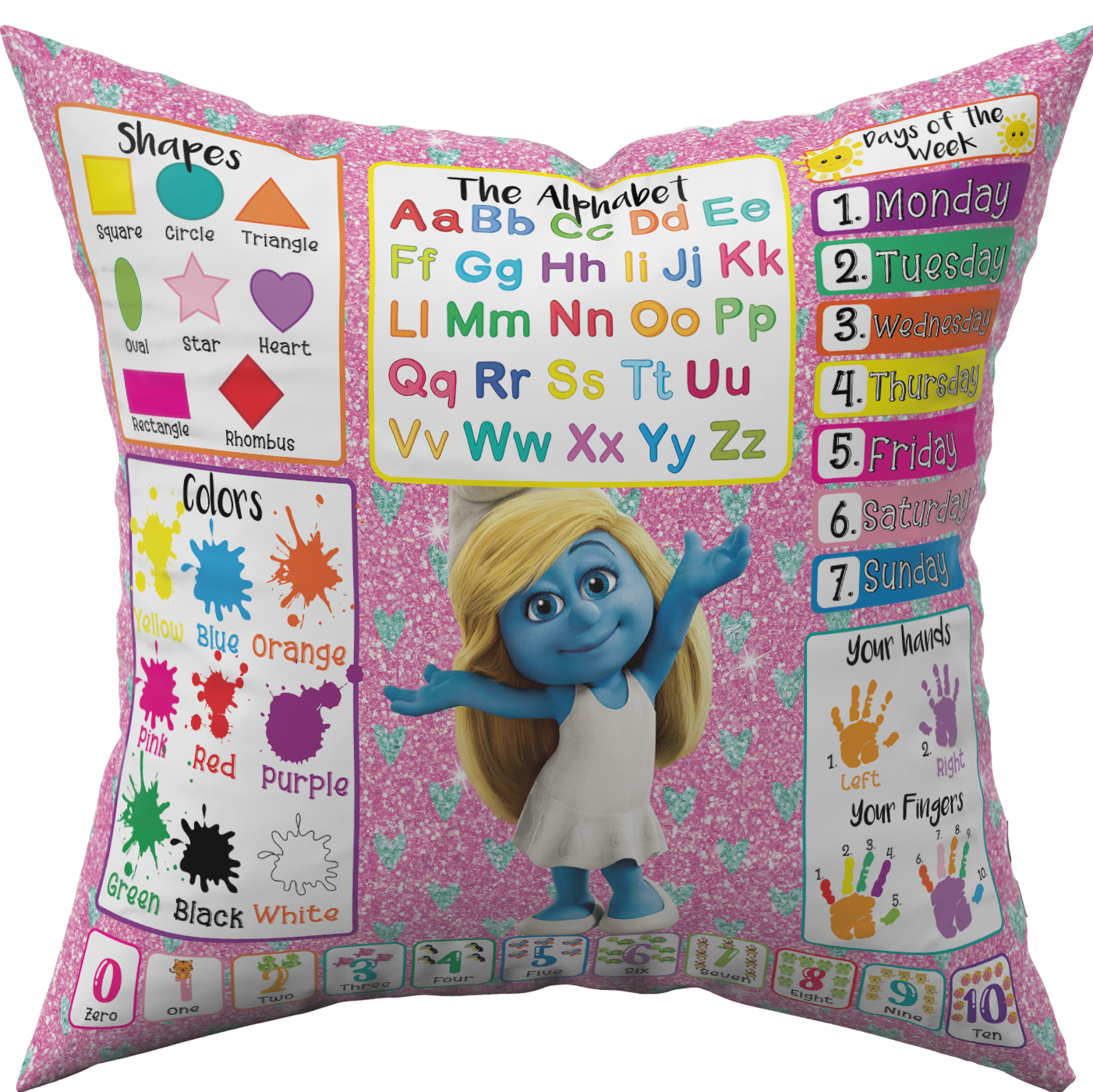 Character inspired that's really cute and fun for kids to learn. Personalize with the child's name so they can learn to spell their name. With this pillow they can learn the days of the week, colors, letters and shapes and more with this fun pillow! Makes a great birthday or Christmas gift.