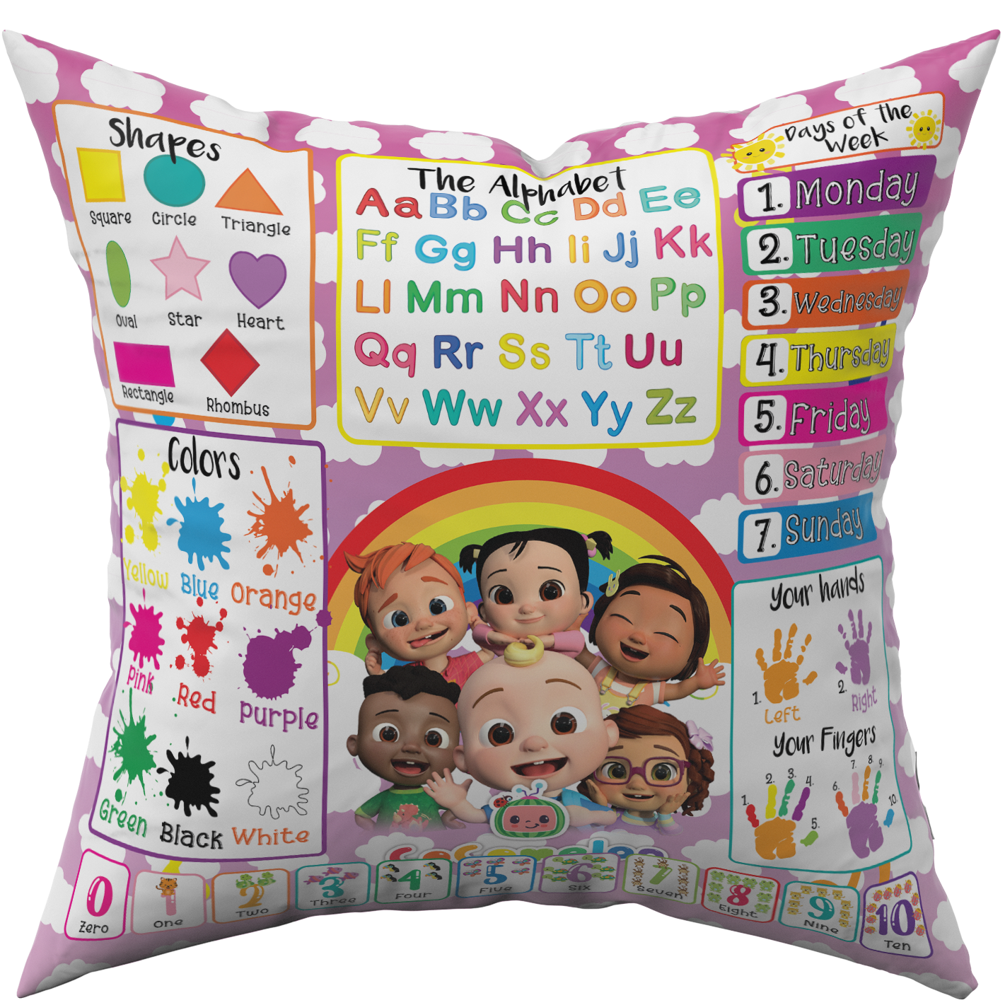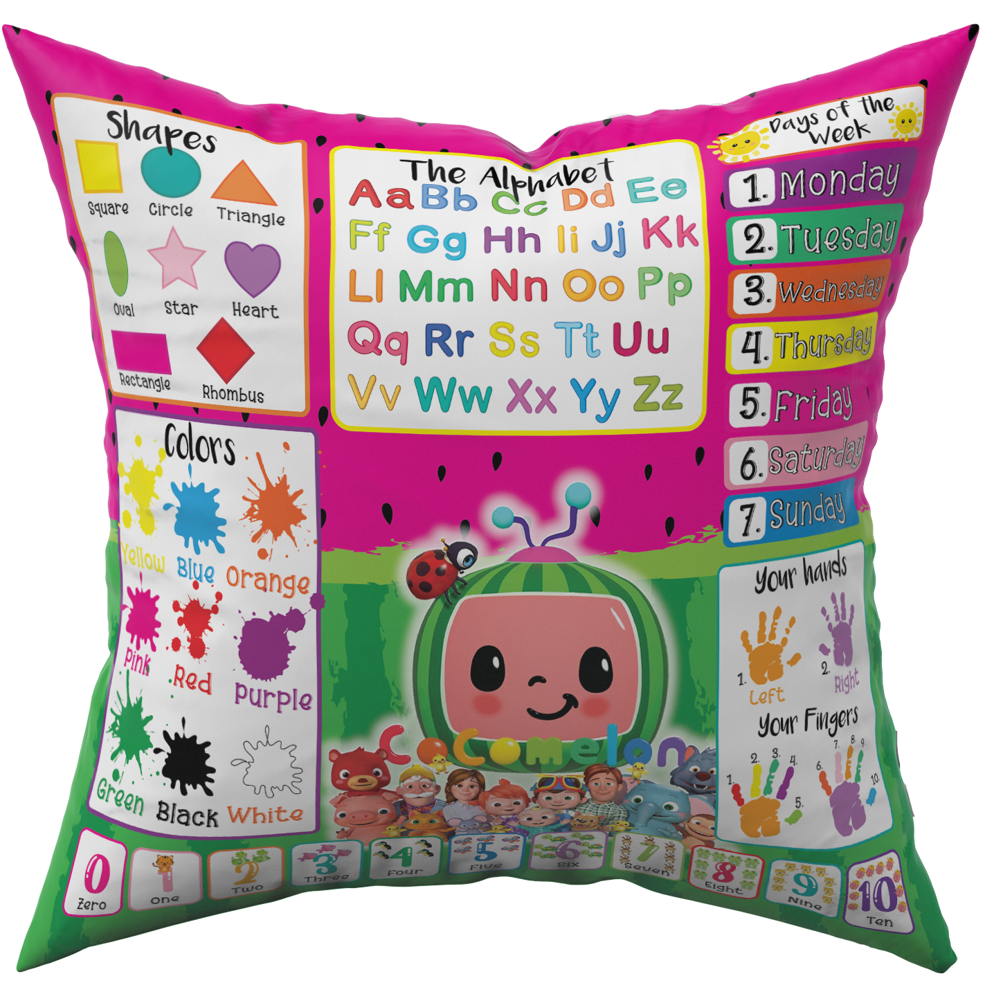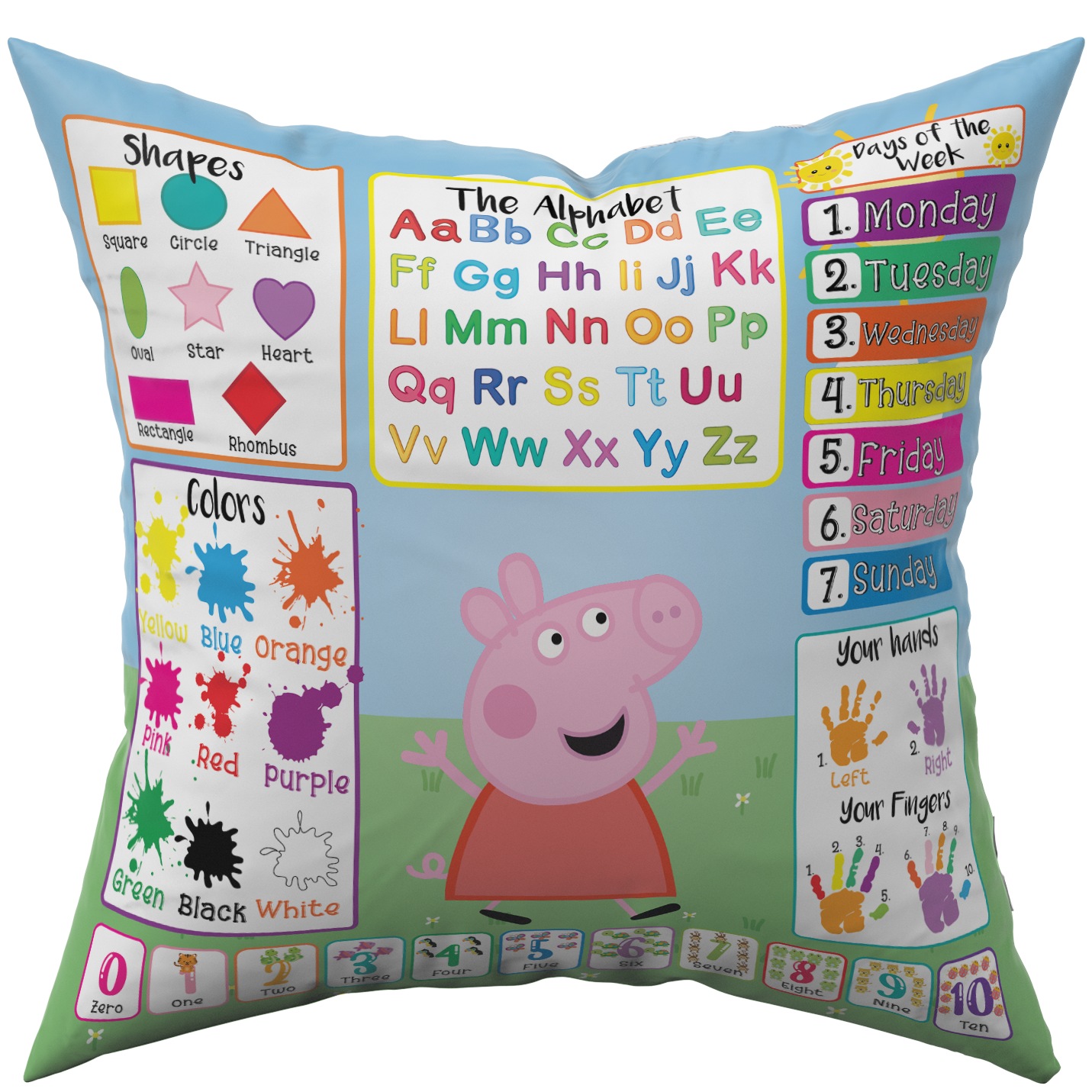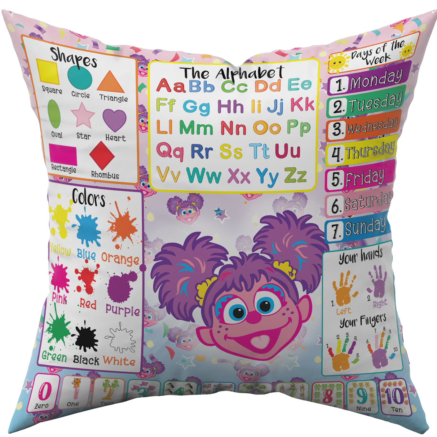 Character inspired that's really cute and fun for kids to learn. Personalize with the child's name so they can learn to spell their name. With this pillow they can learn the days of the week, colors, letters and shapes and more with this fun pillow! Makes a great birthday or Christmas gift.
