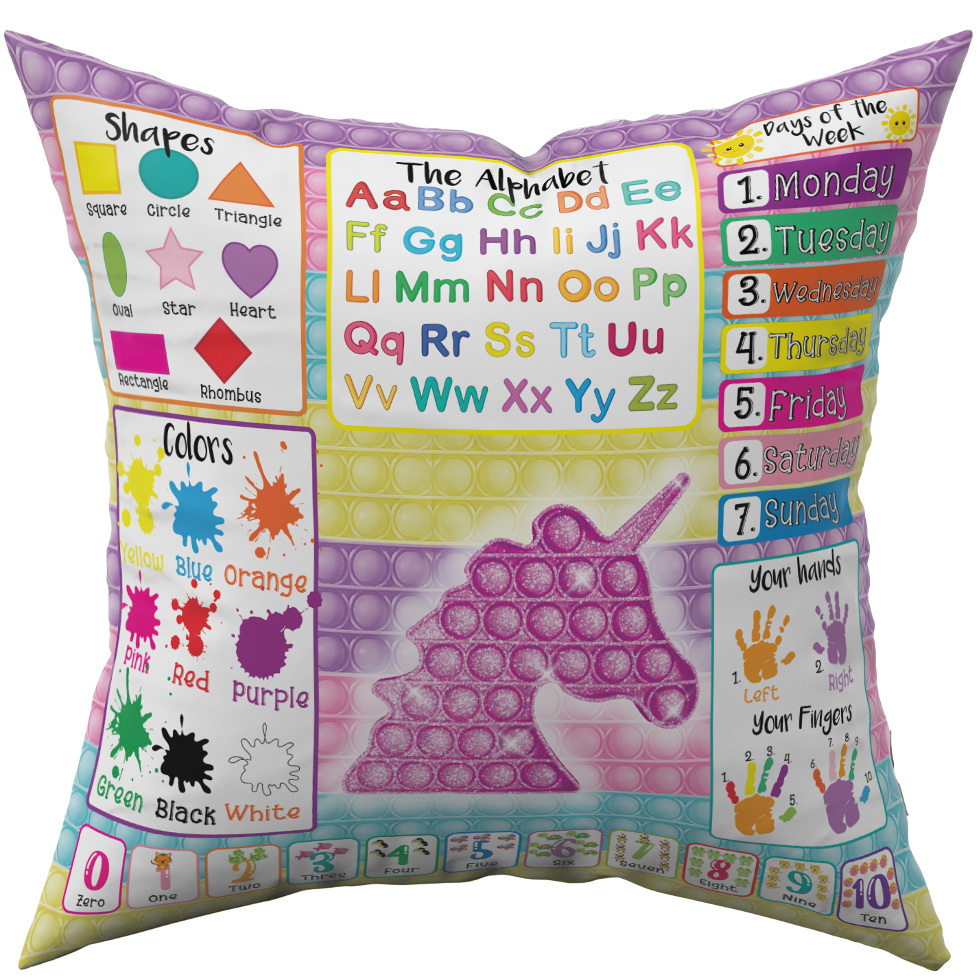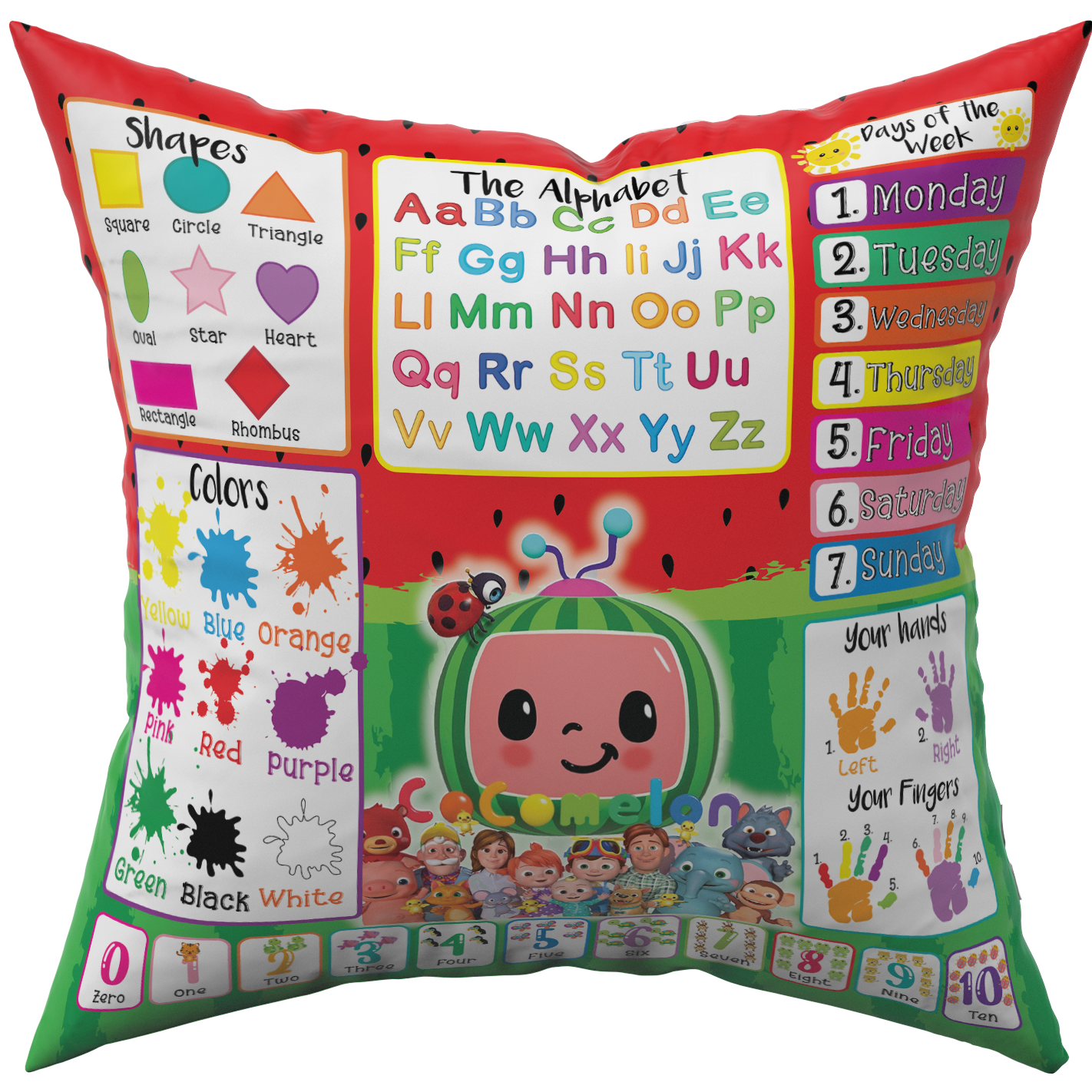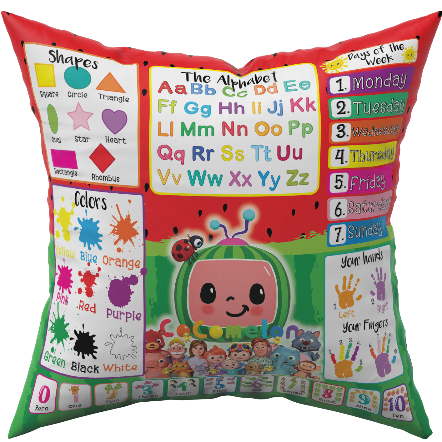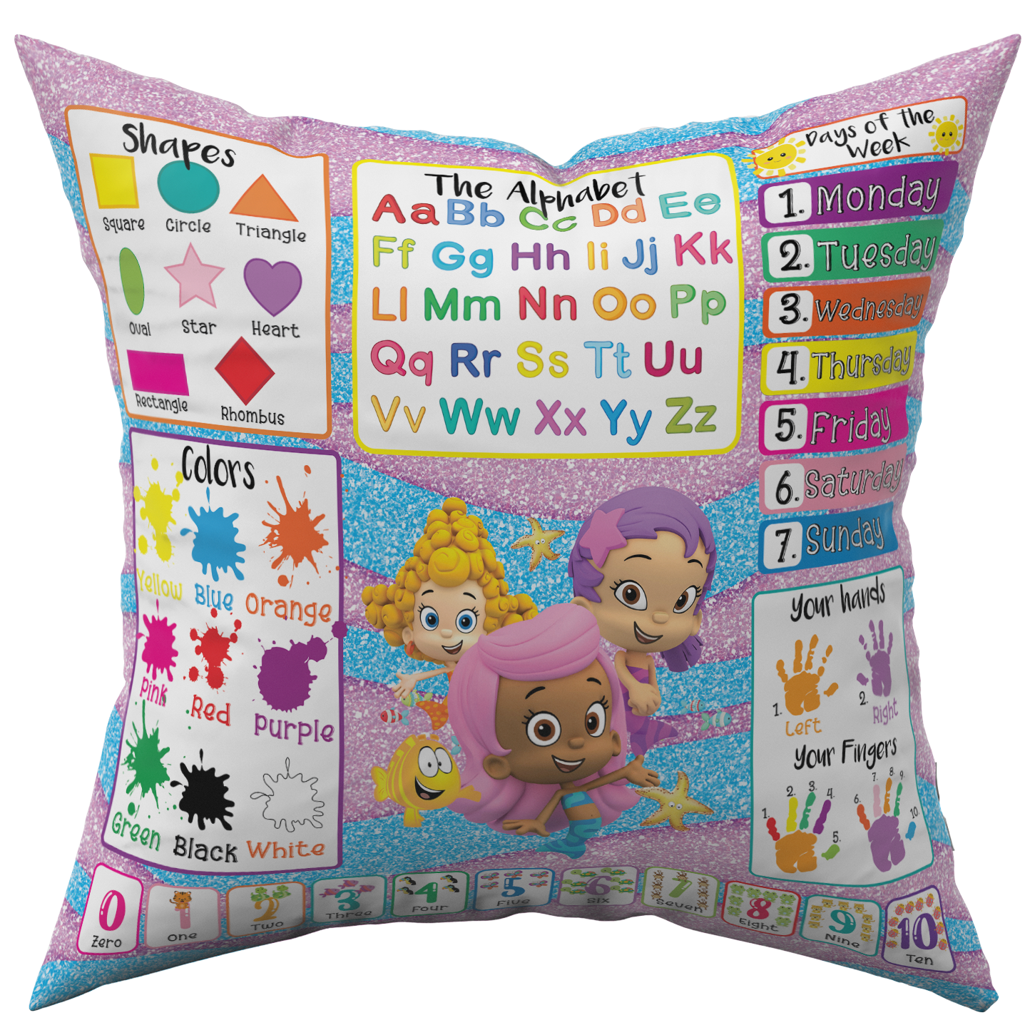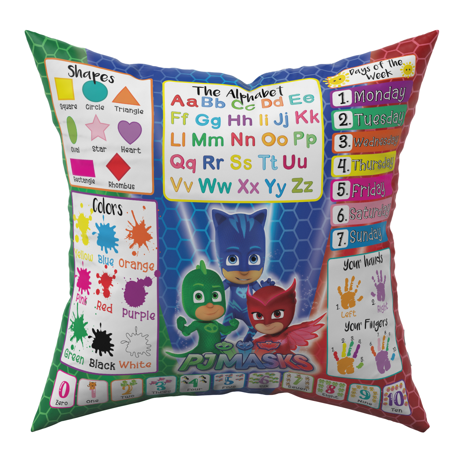 Character inspired that's really cute and fun for kids to learn. Personalize with the child's name so they can learn to spell their name. With this pillow they can learn the days of the week, colors, letters and shapes and more with this fun pillow! Makes a great birthday or Christmas gift.