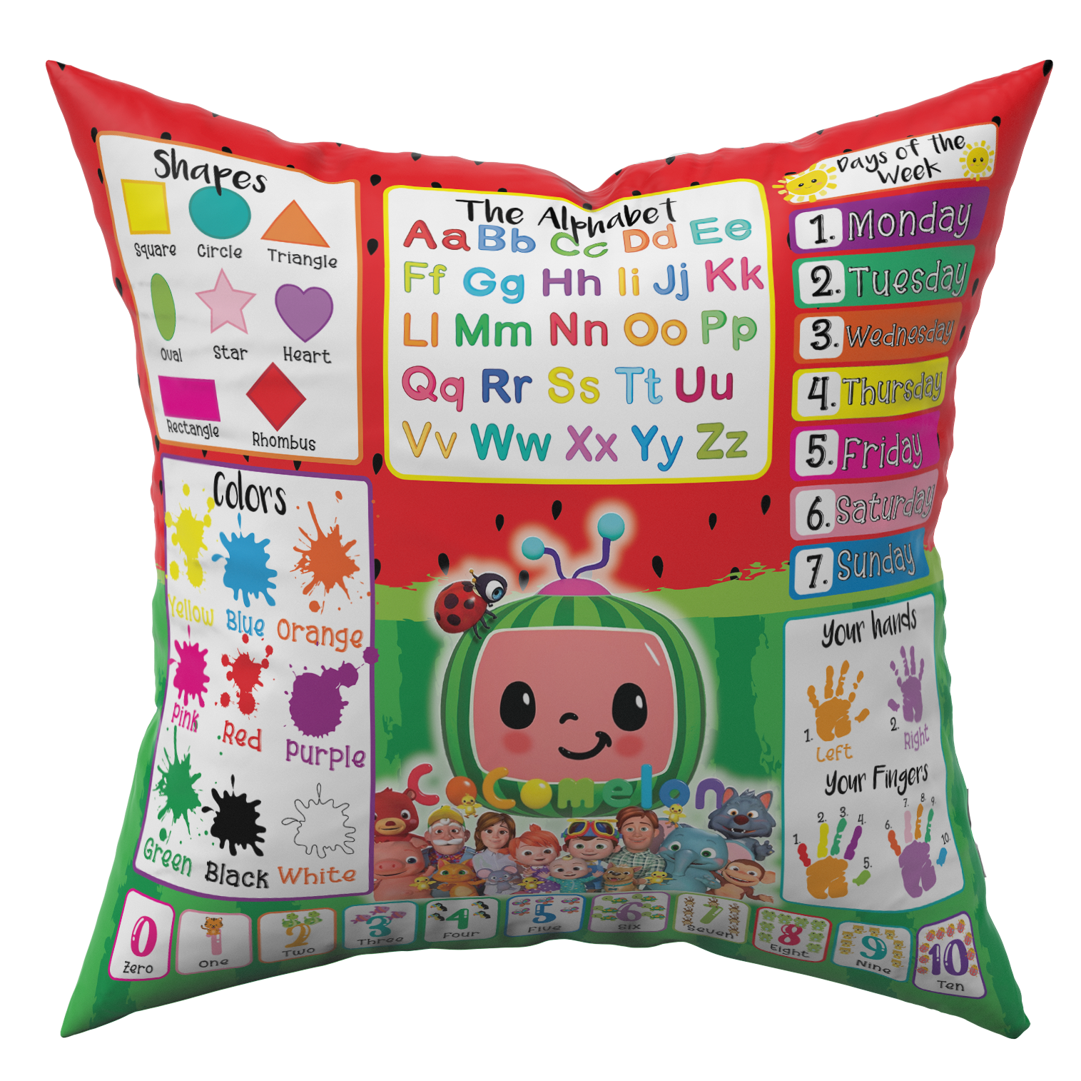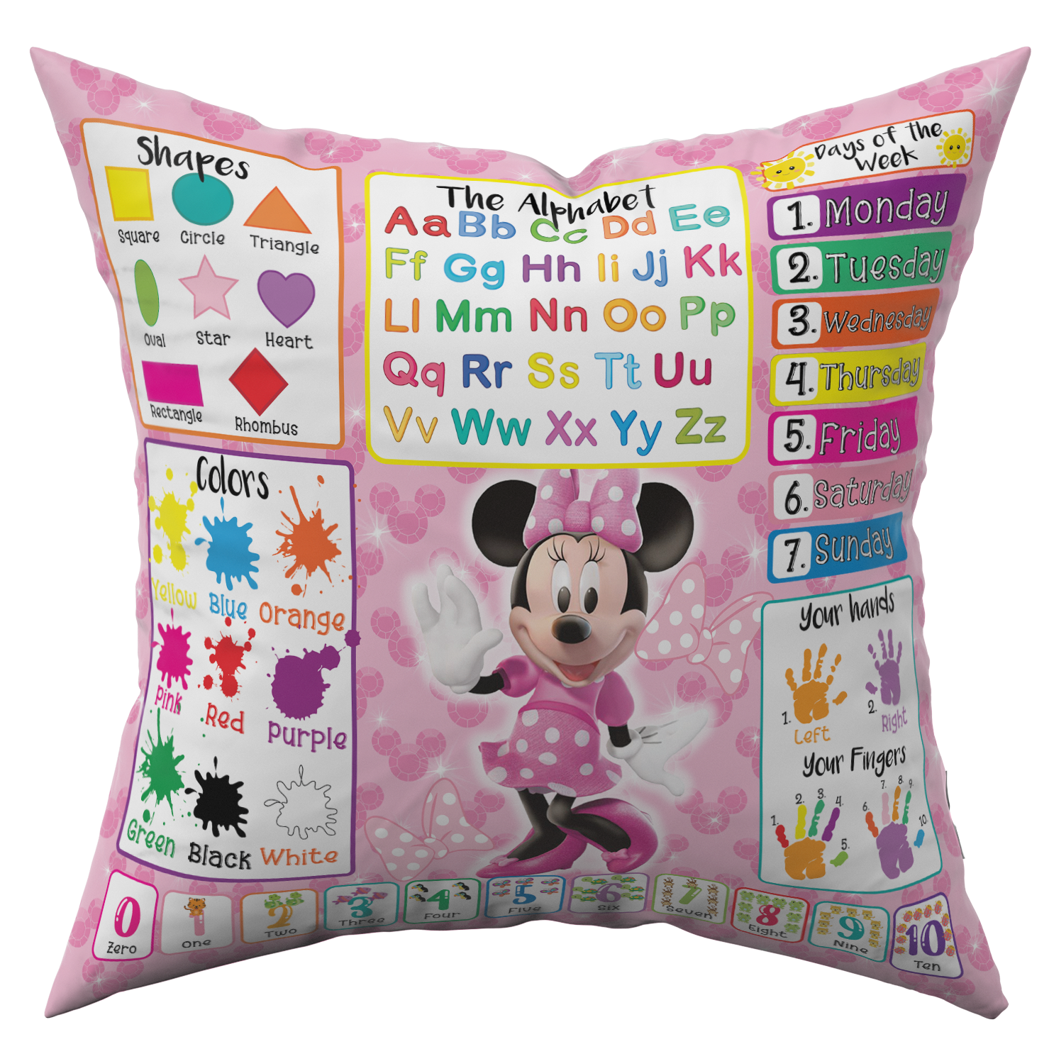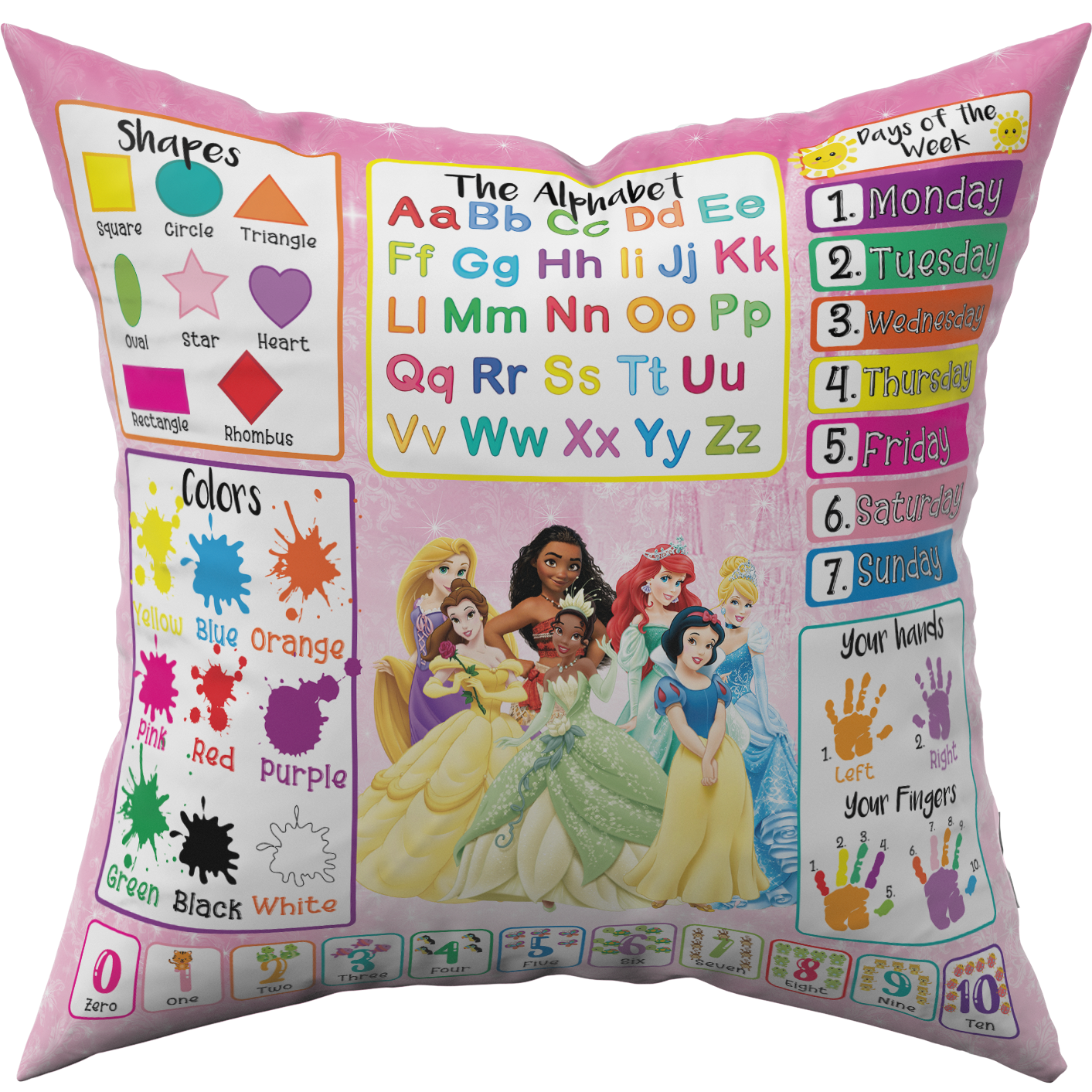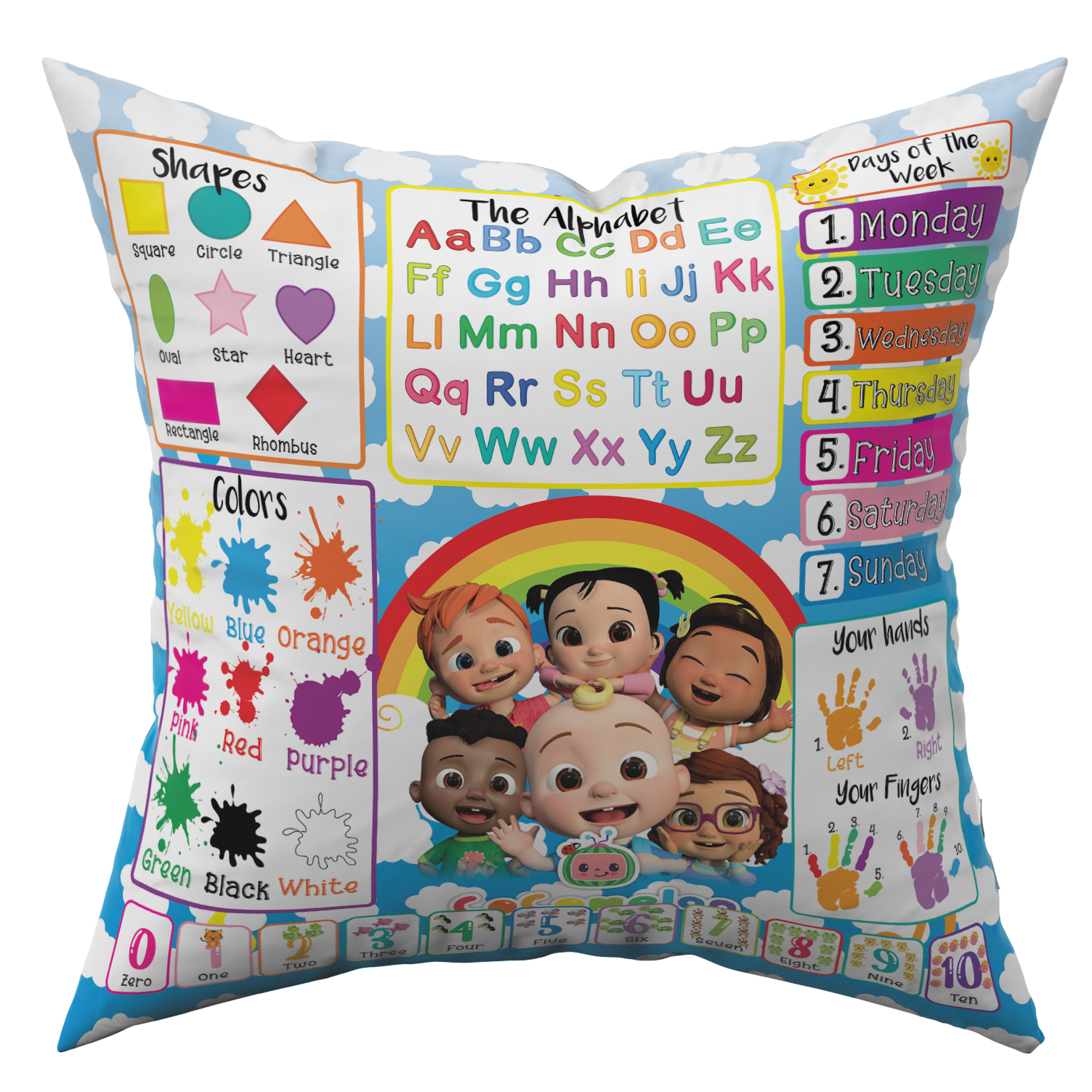 Character inspired that's really cute and fun for kids to learn. Personalize with the child's name so they can learn to spell their name. With this pillow they can learn the days of the week, colors, letters and shapes and more with this fun pillow! Makes a great birthday or Christmas gift.