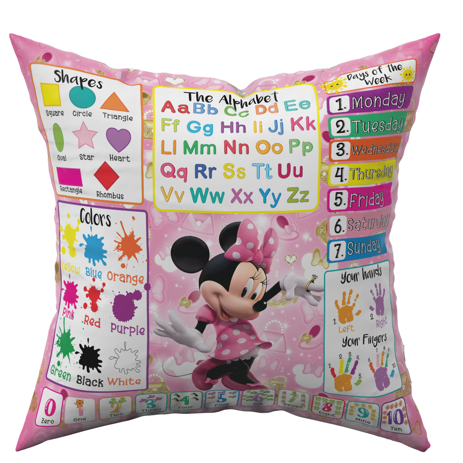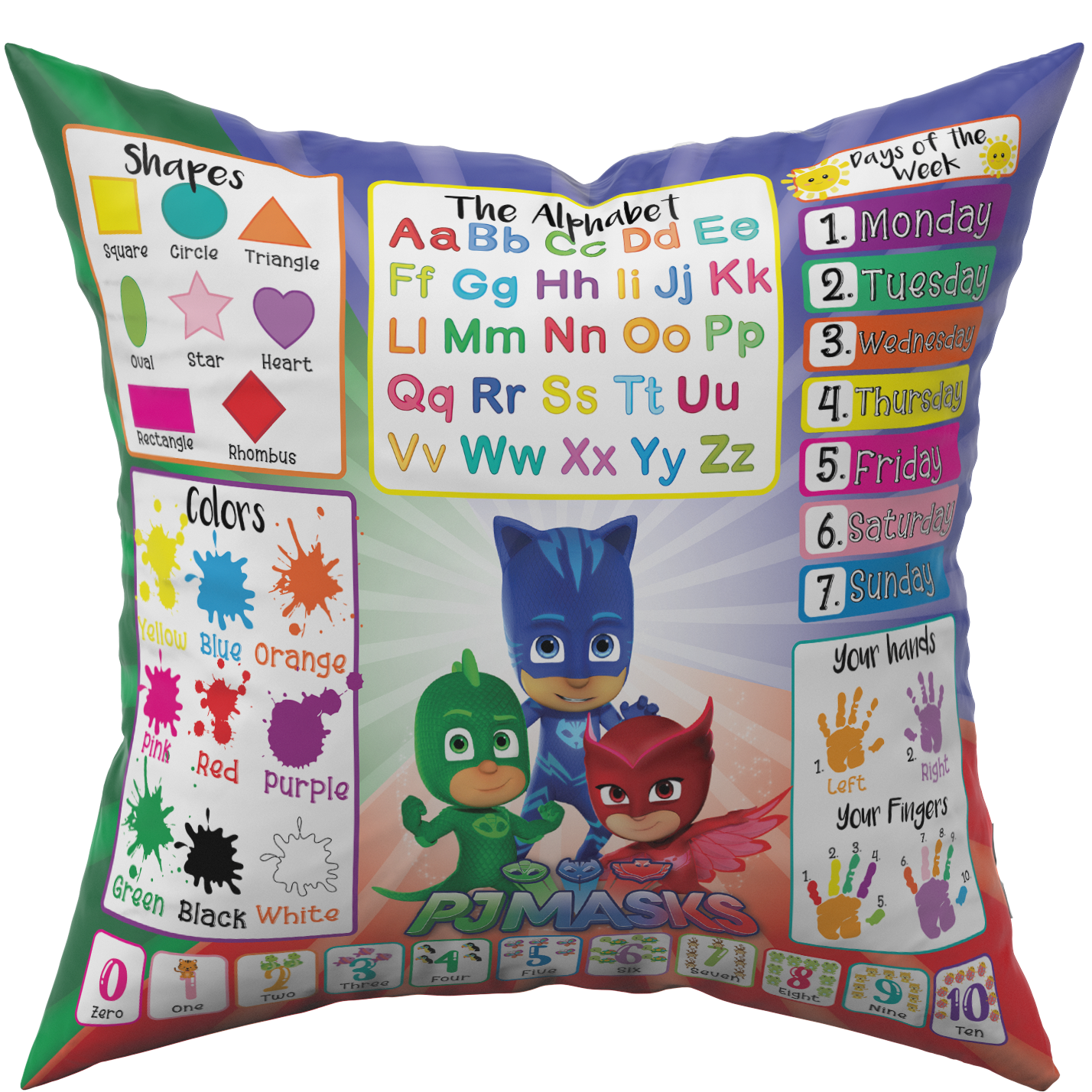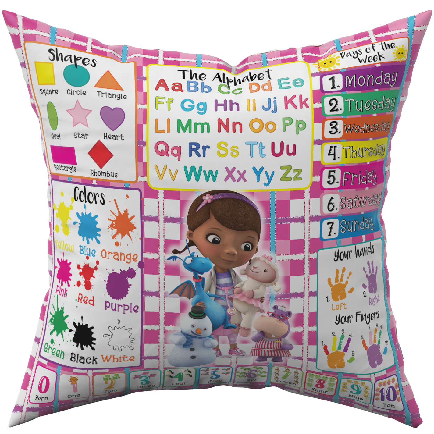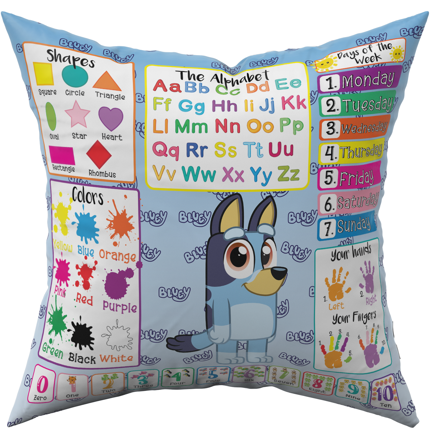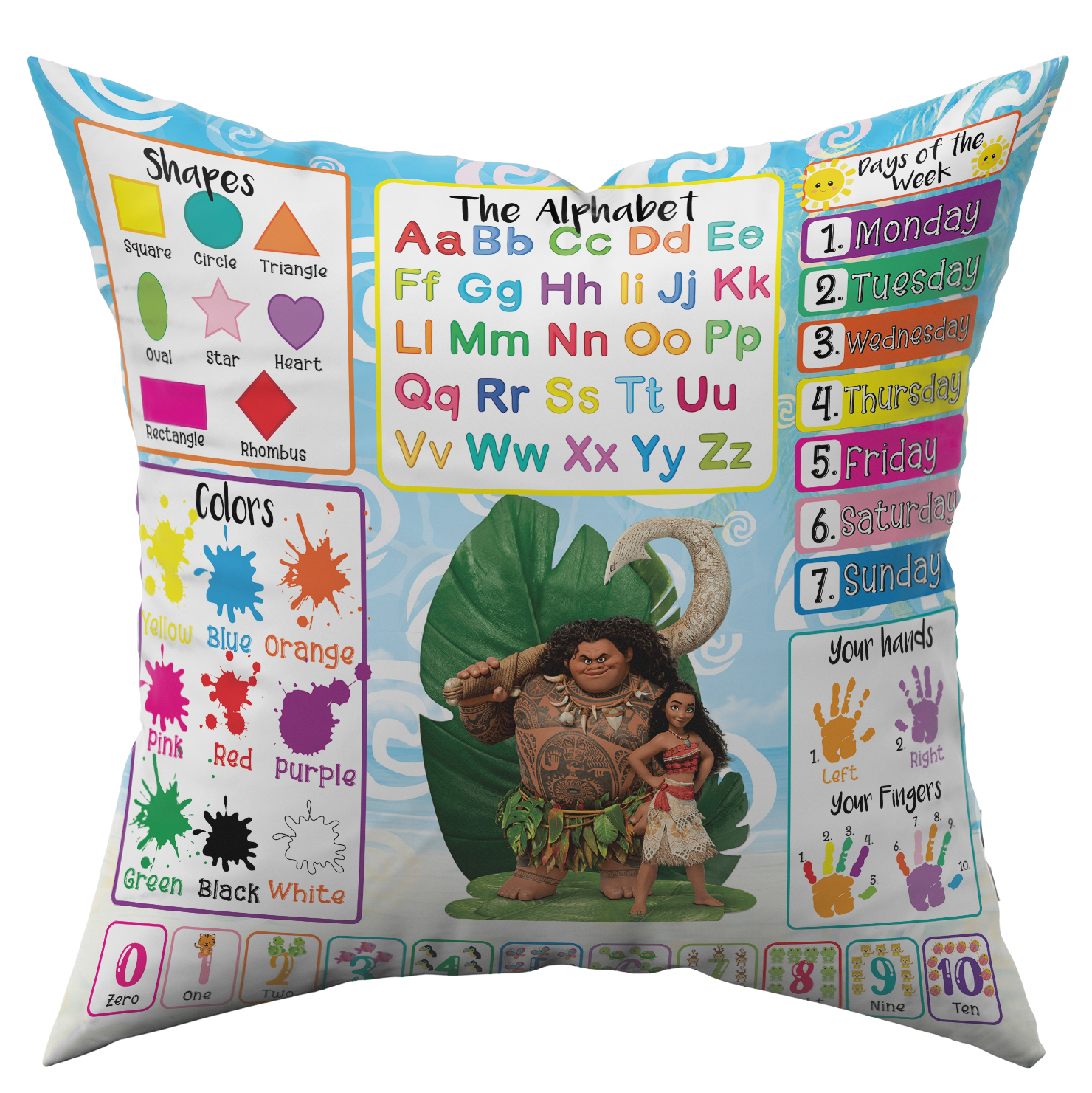 Character inspired that's really cute and fun for kids to learn. Personalize with the child's name so they can learn to spell their name. With this pillow they can learn the days of the week, colors, letters and shapes and more with this fun pillow! Makes a great birthday or Christmas gift.