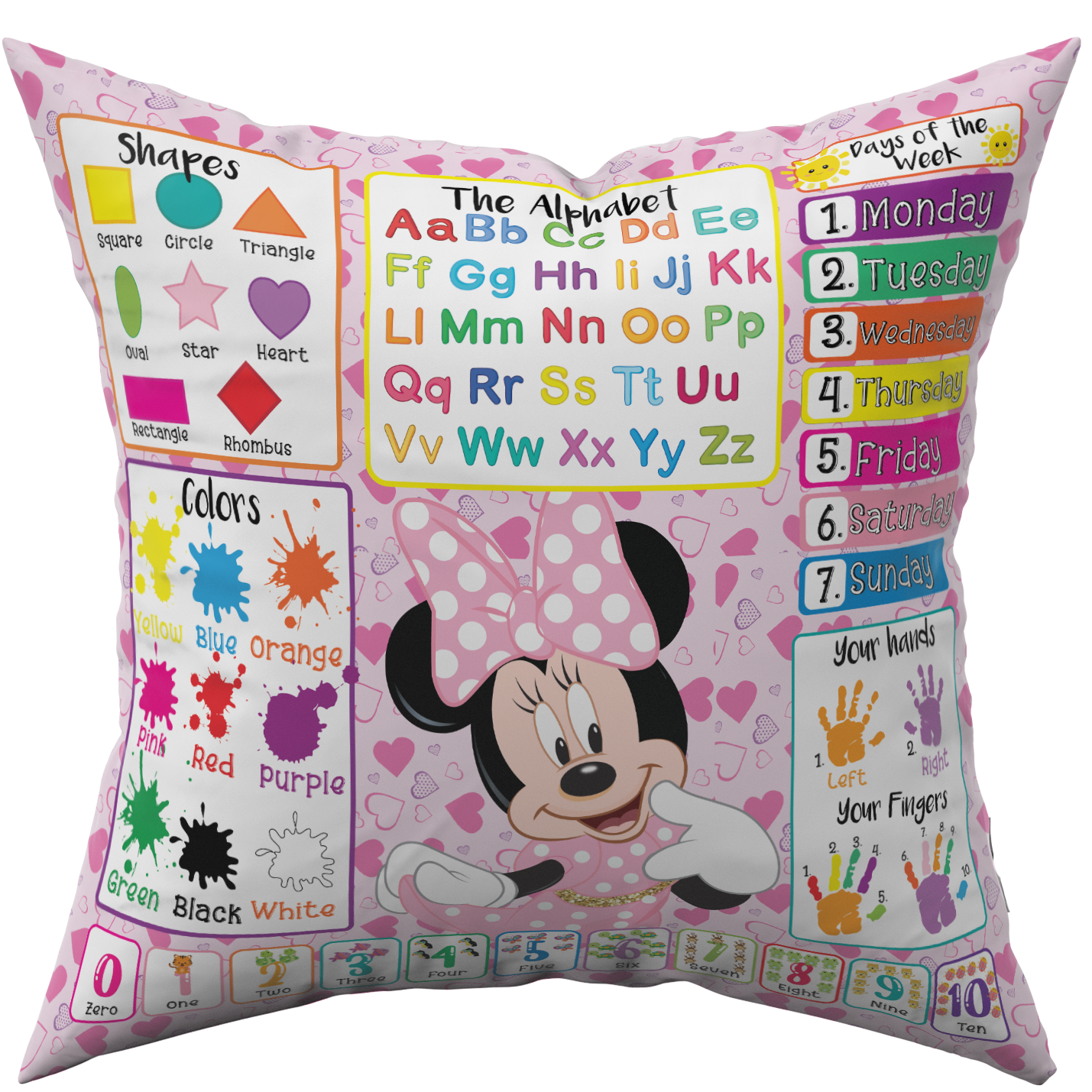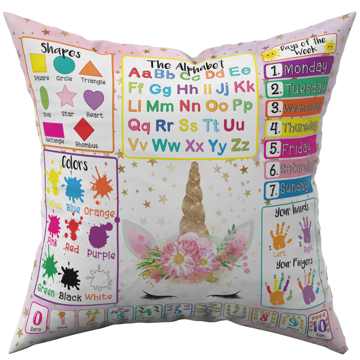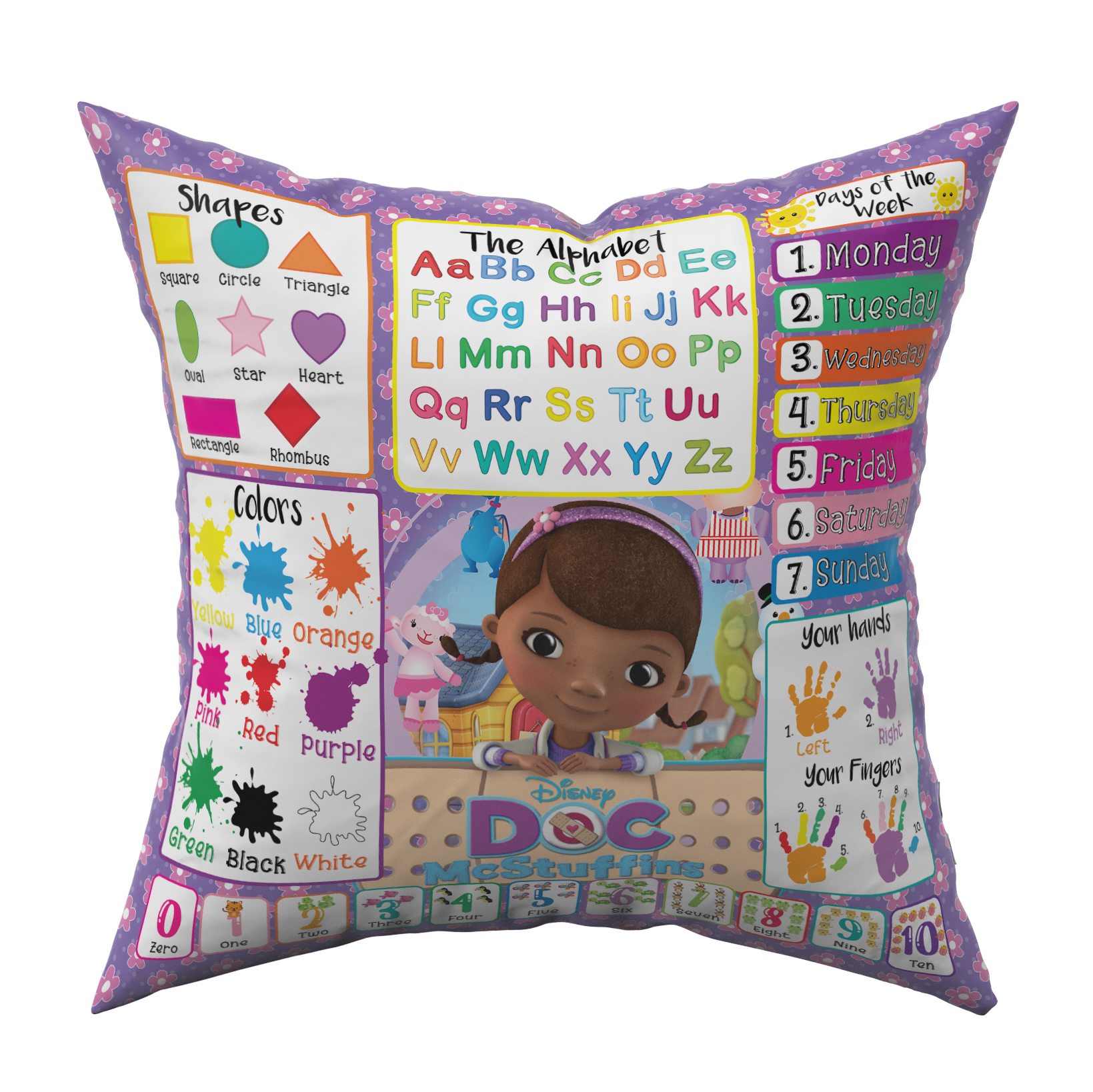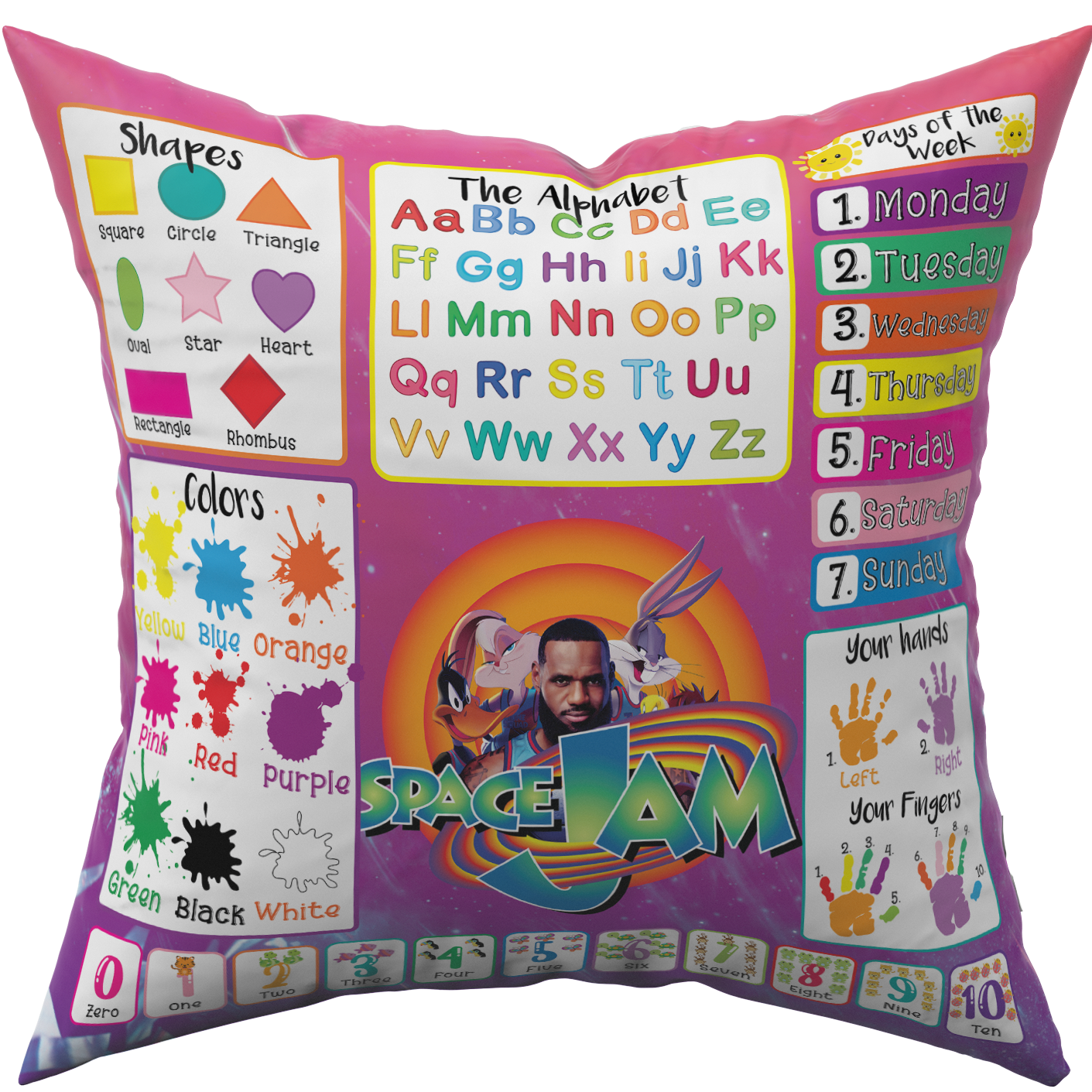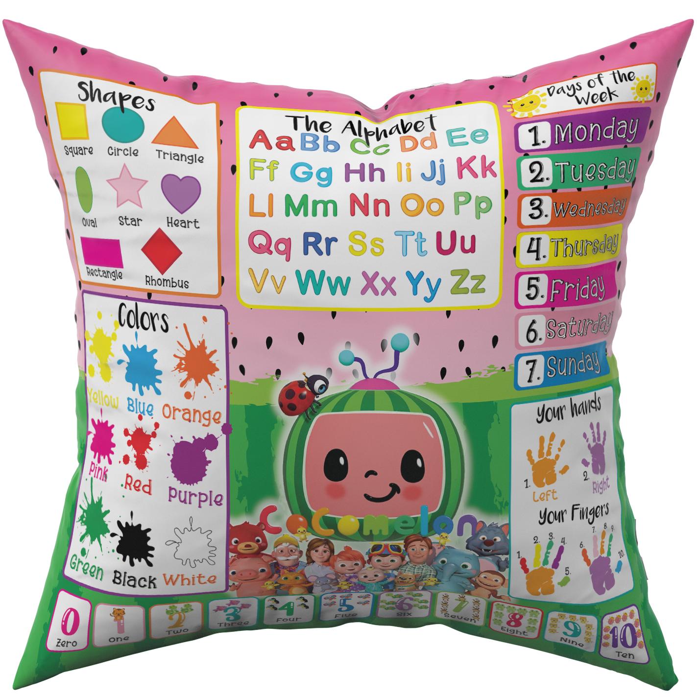 Character inspired that's really cute and fun for kids to learn. Personalize with the child's name so they can learn to spell their name. With this pillow they can learn the days of the week, colors, letters and shapes and more with this fun pillow! Makes a great birthday or Christmas gift.