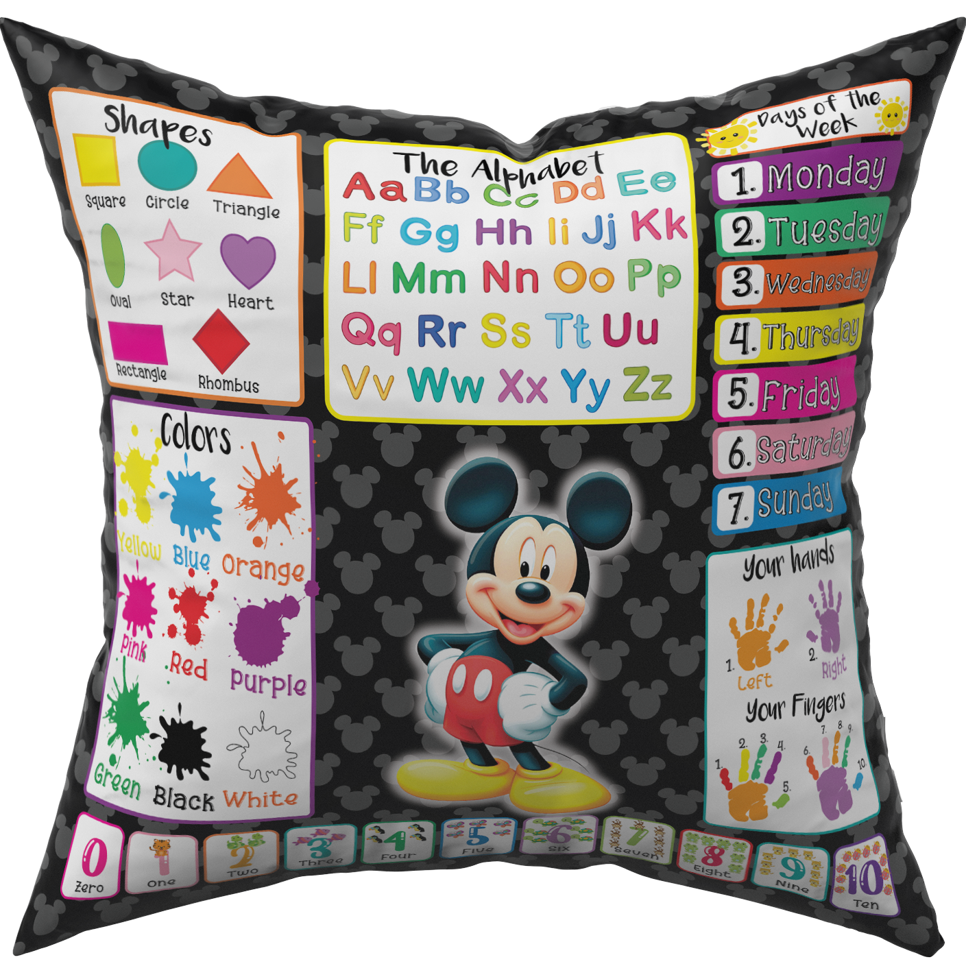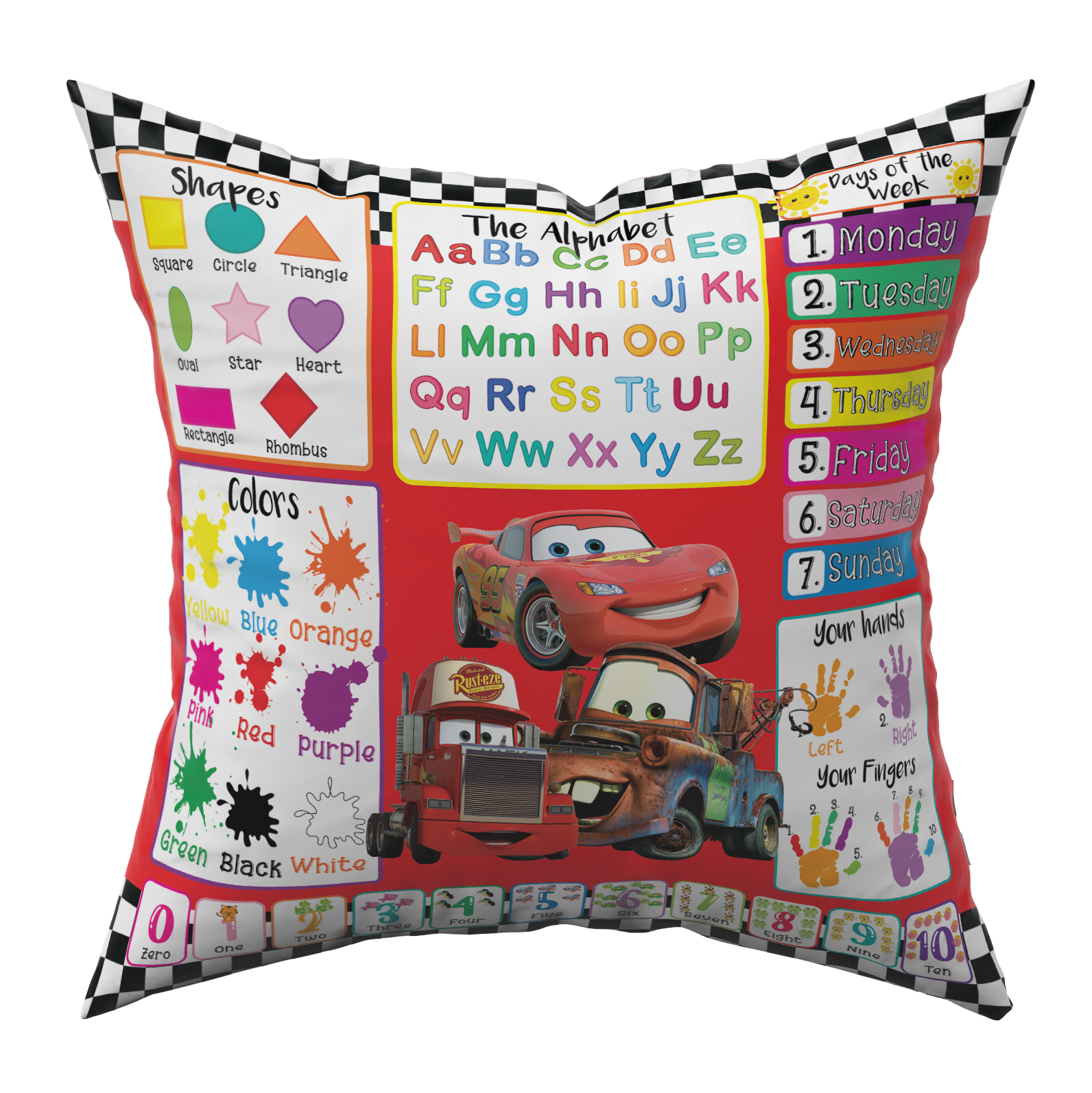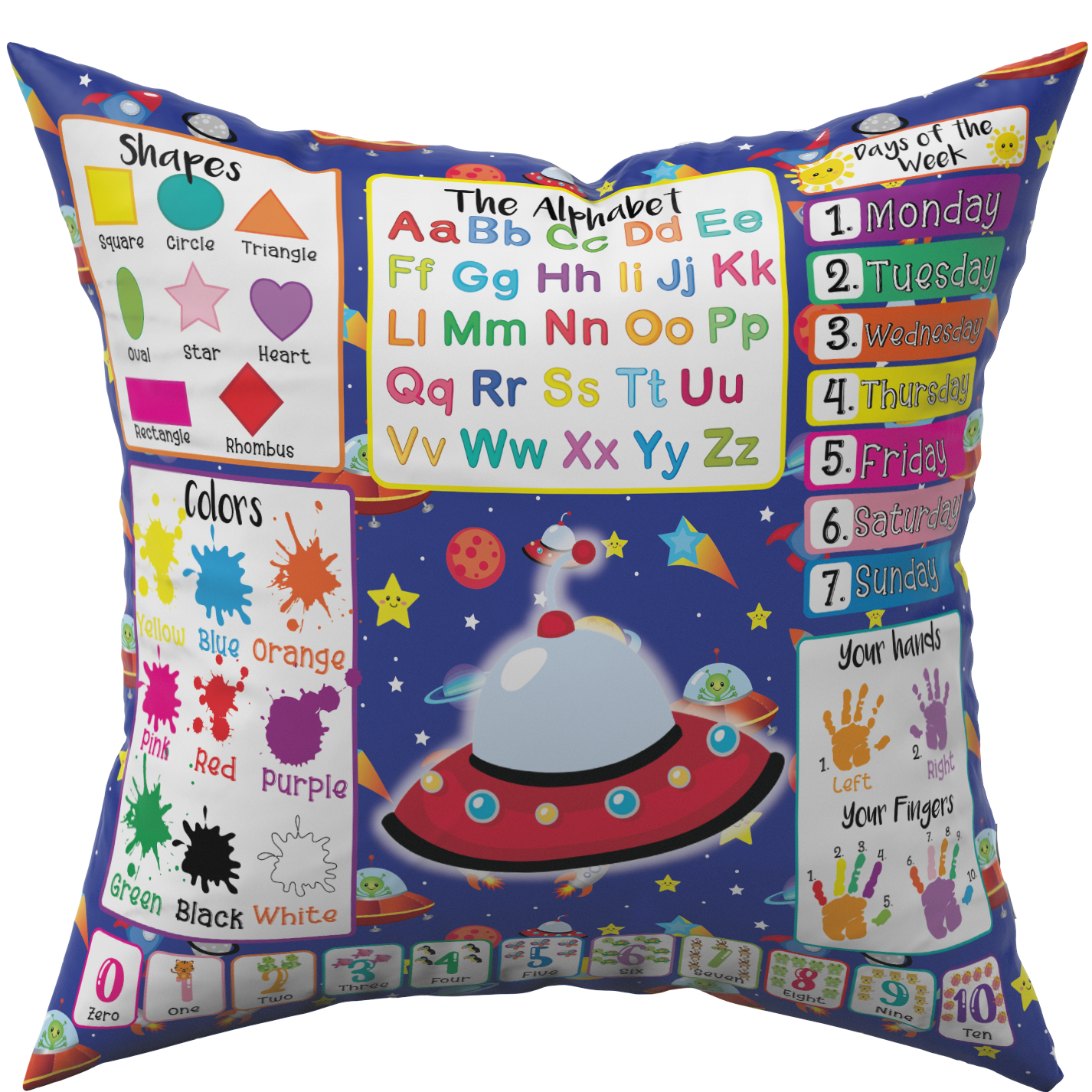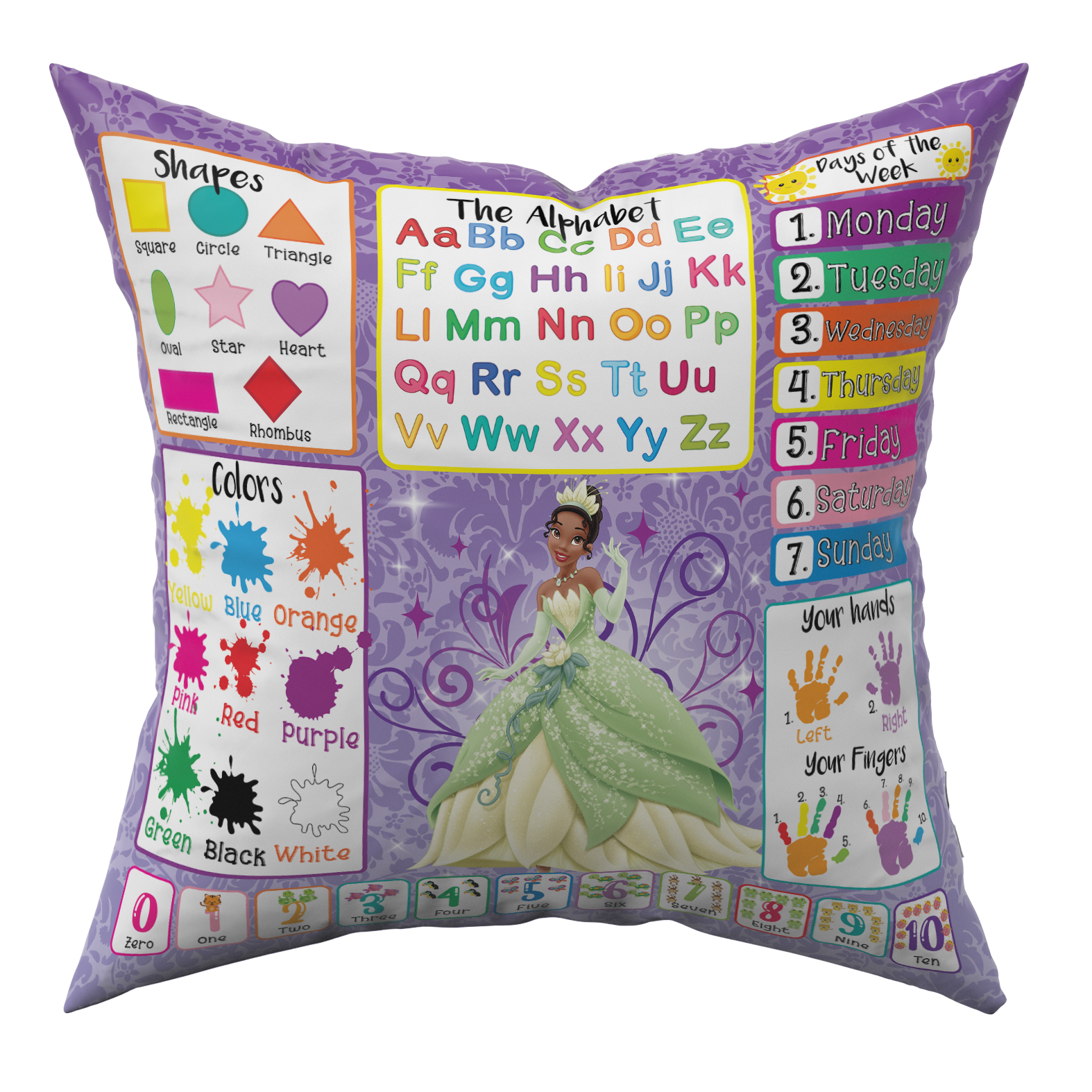Character inspired that's really cute and fun for kids to learn. Personalize with the child's name so they can learn to spell their name. With this pillow they can learn the days of the week, colors, letters and shapes and more with this fun pillow! Makes a great birthday or Christmas gift.