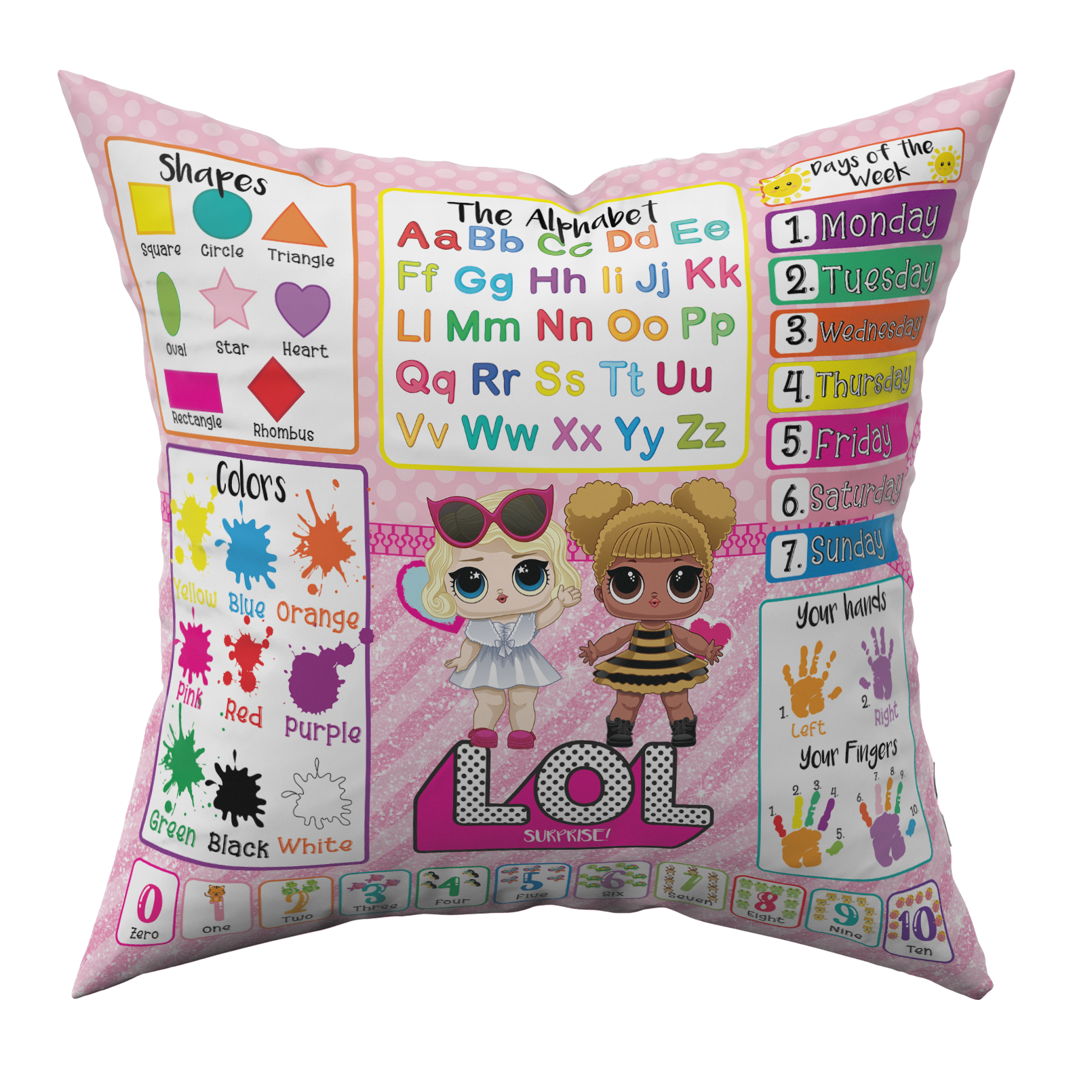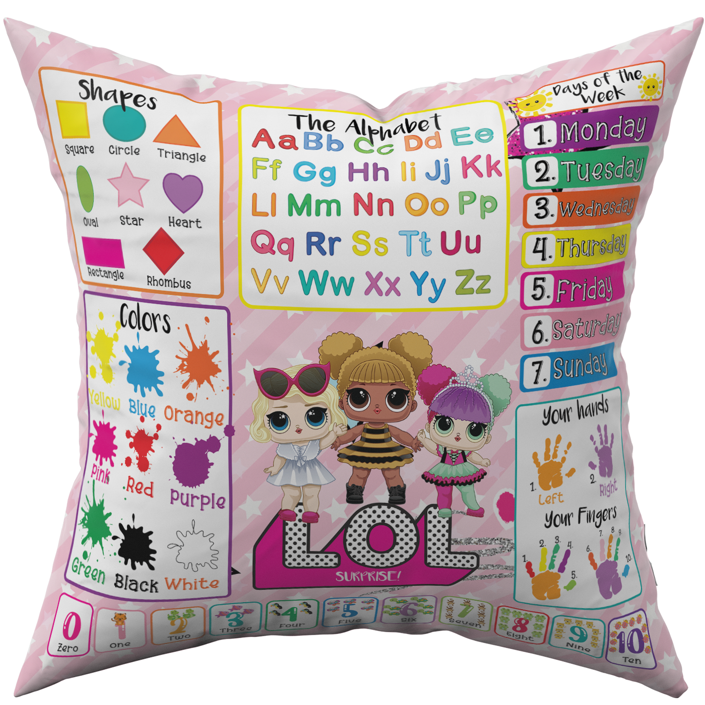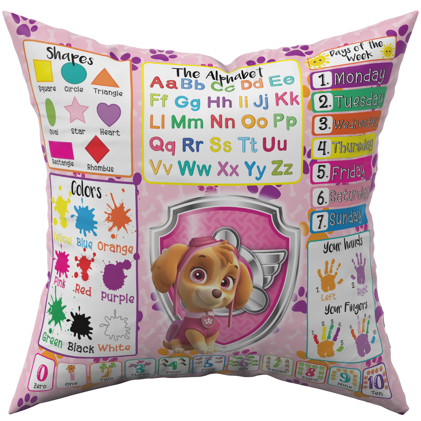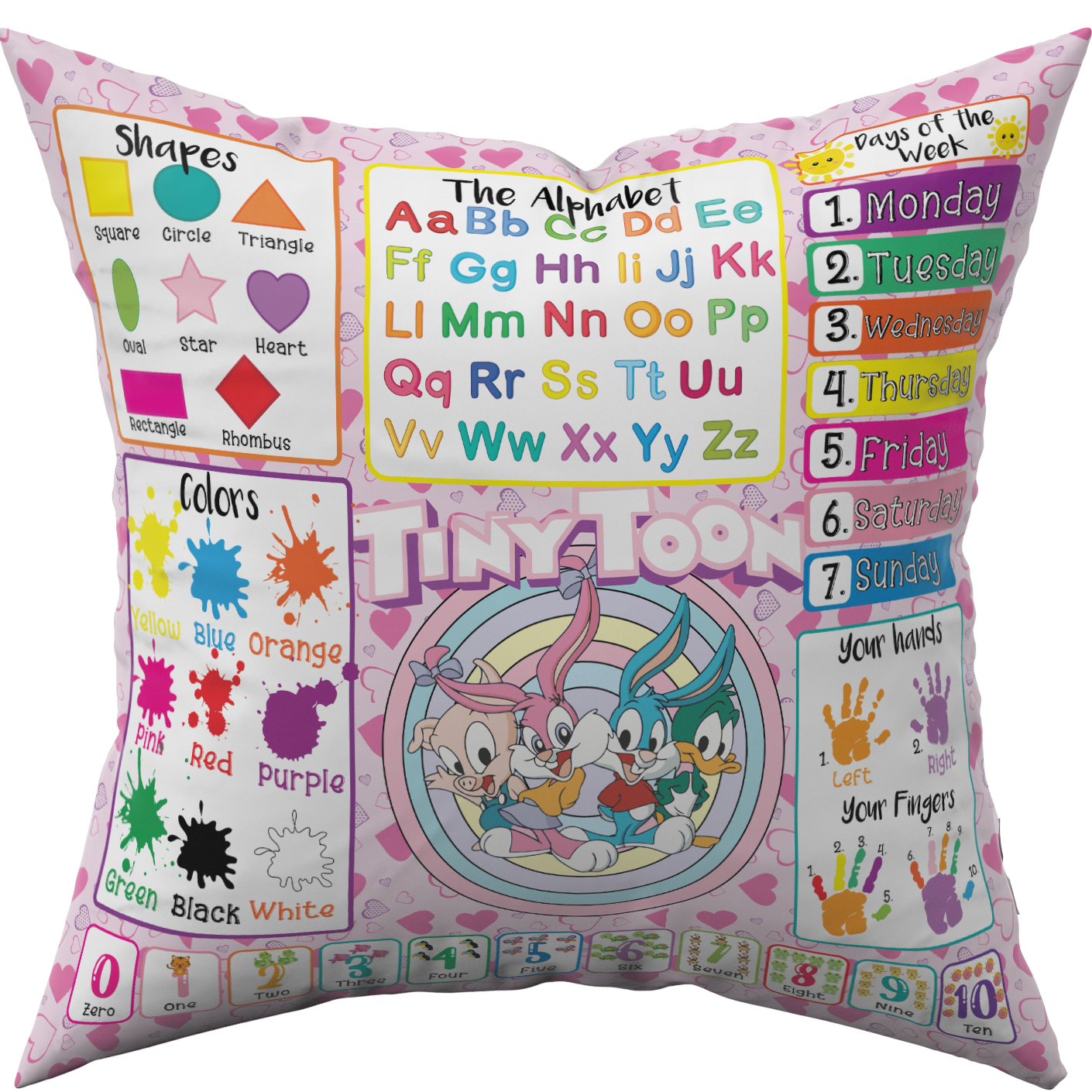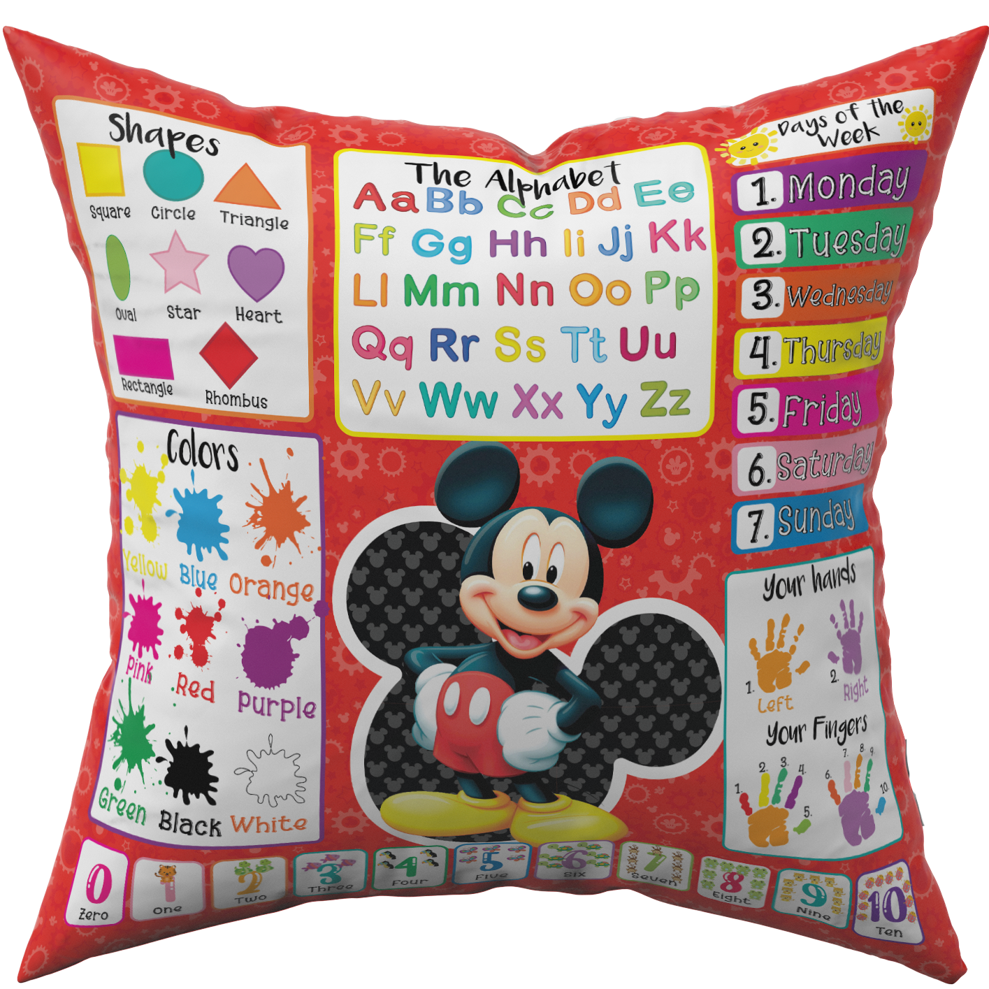 Character inspired that's really cute and fun for kids to learn. Personalize with the child's name so they can learn to spell their name. With this pillow they can learn the days of the week, colors, letters and shapes and more with this fun pillow! Makes a great birthday or Christmas gift.