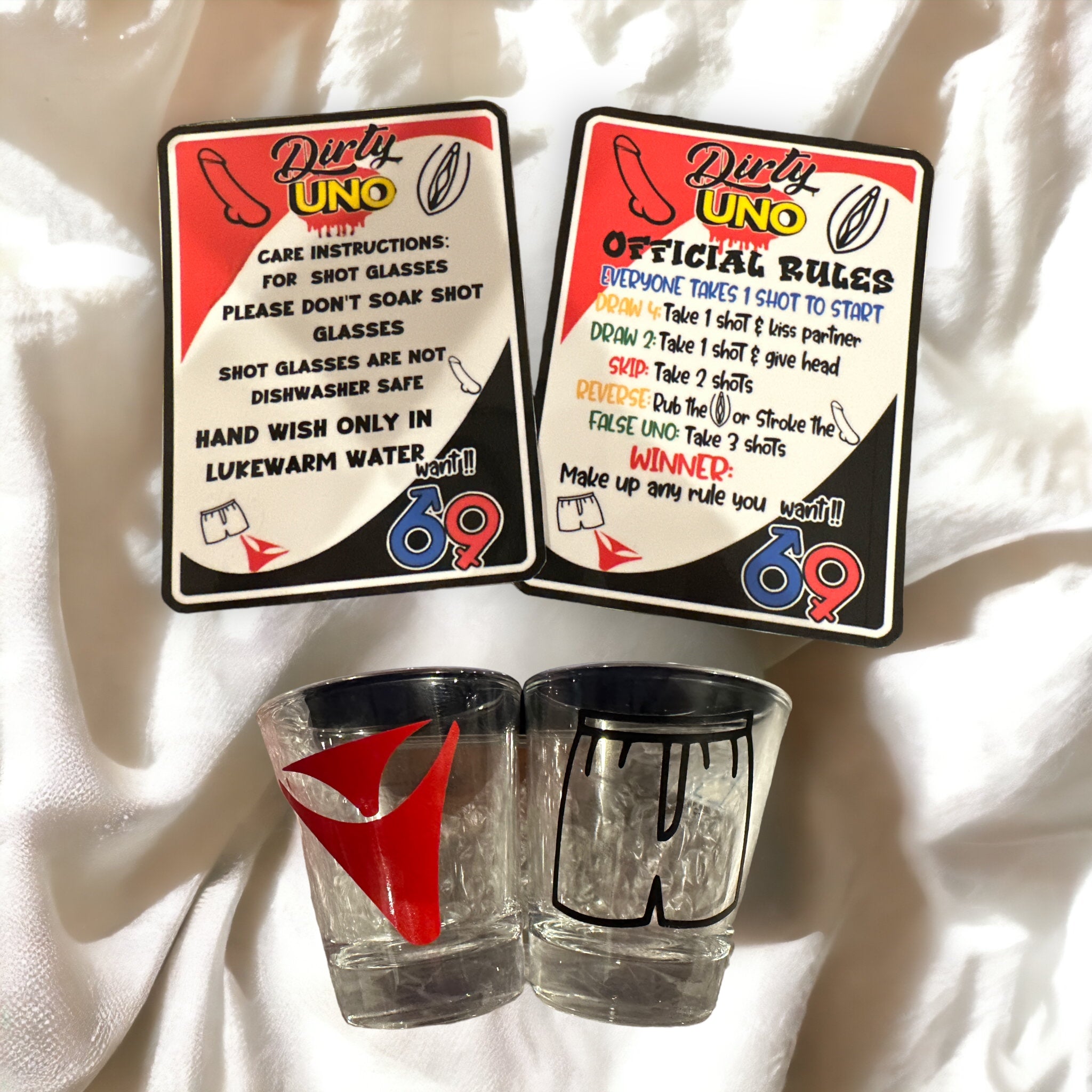 Sick of playing Uno sober? Get this popular card game with alcohol and hot loving twist! The deck of cards comes with two shot glasses, and the instruction card comes laminated, all in a trendy carrying case.