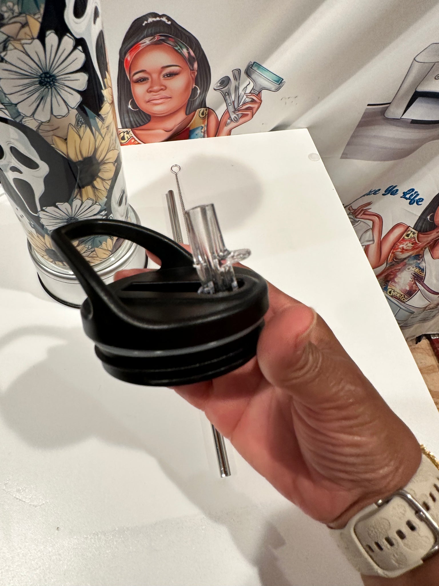 Plus our tops now screw on, you will get two tops, a metal straw, and a plastic straw, & straw cleaner - what more could you want?!.