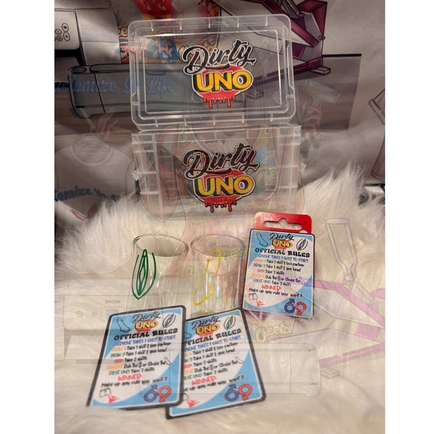 Sick of playing Uno sober? Get this popular card game with alcohol and hot loving twist! The deck of cards comes with two shot glasses, and the instruction card comes laminated, all in a trendy carrying case.