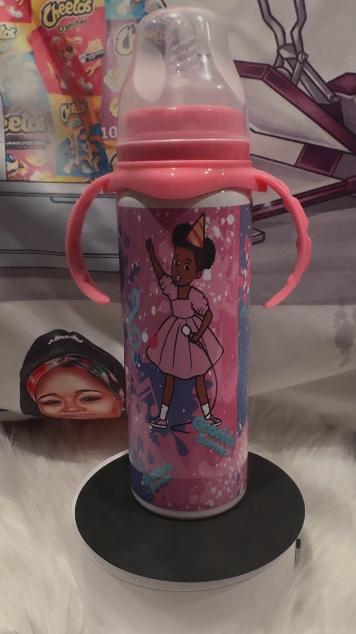This personalized 8 oz stainless steel baby bottle offers a long-lasting sublimation image that will never fade.