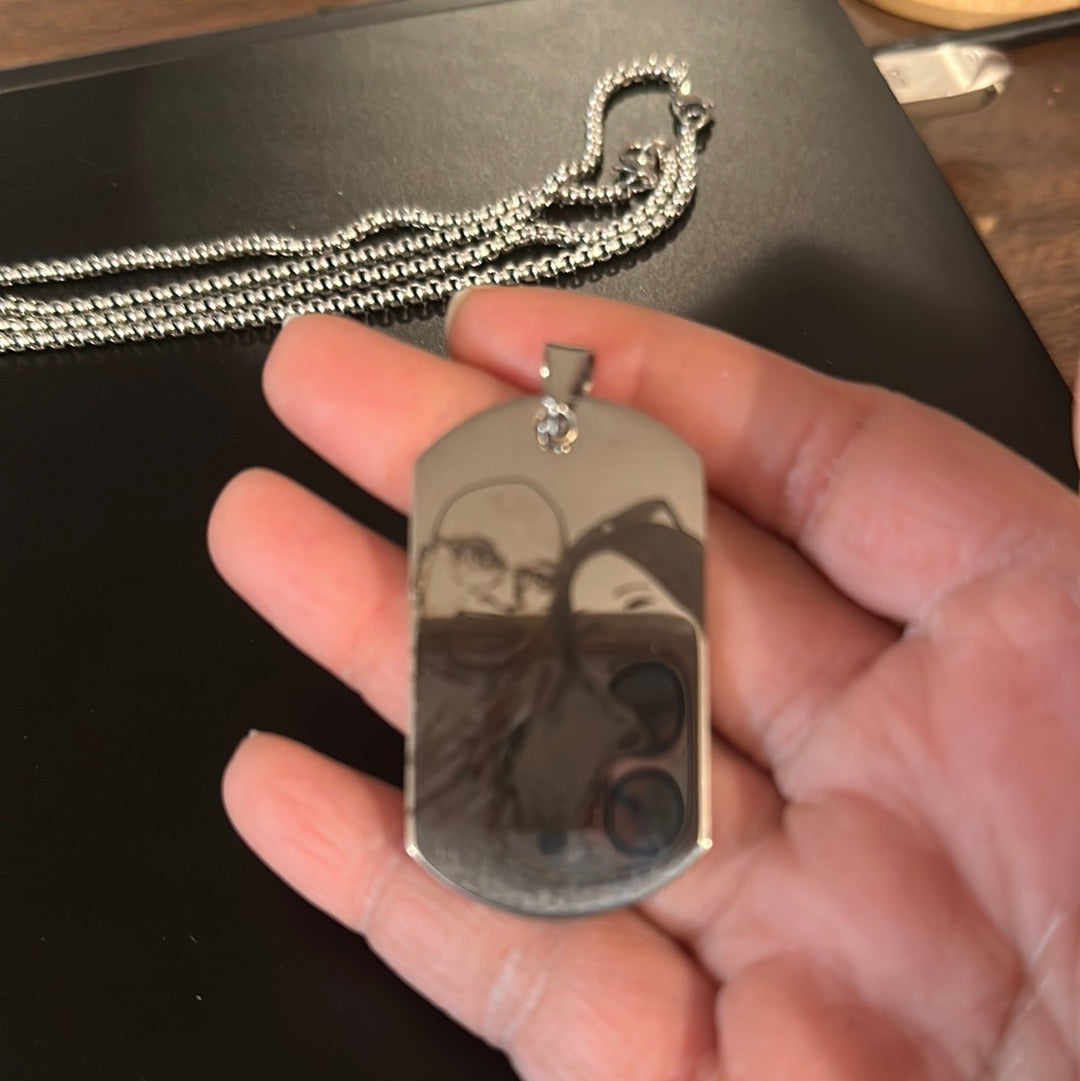 Personalized keychain/necklace. The front side can be customized with one photo.