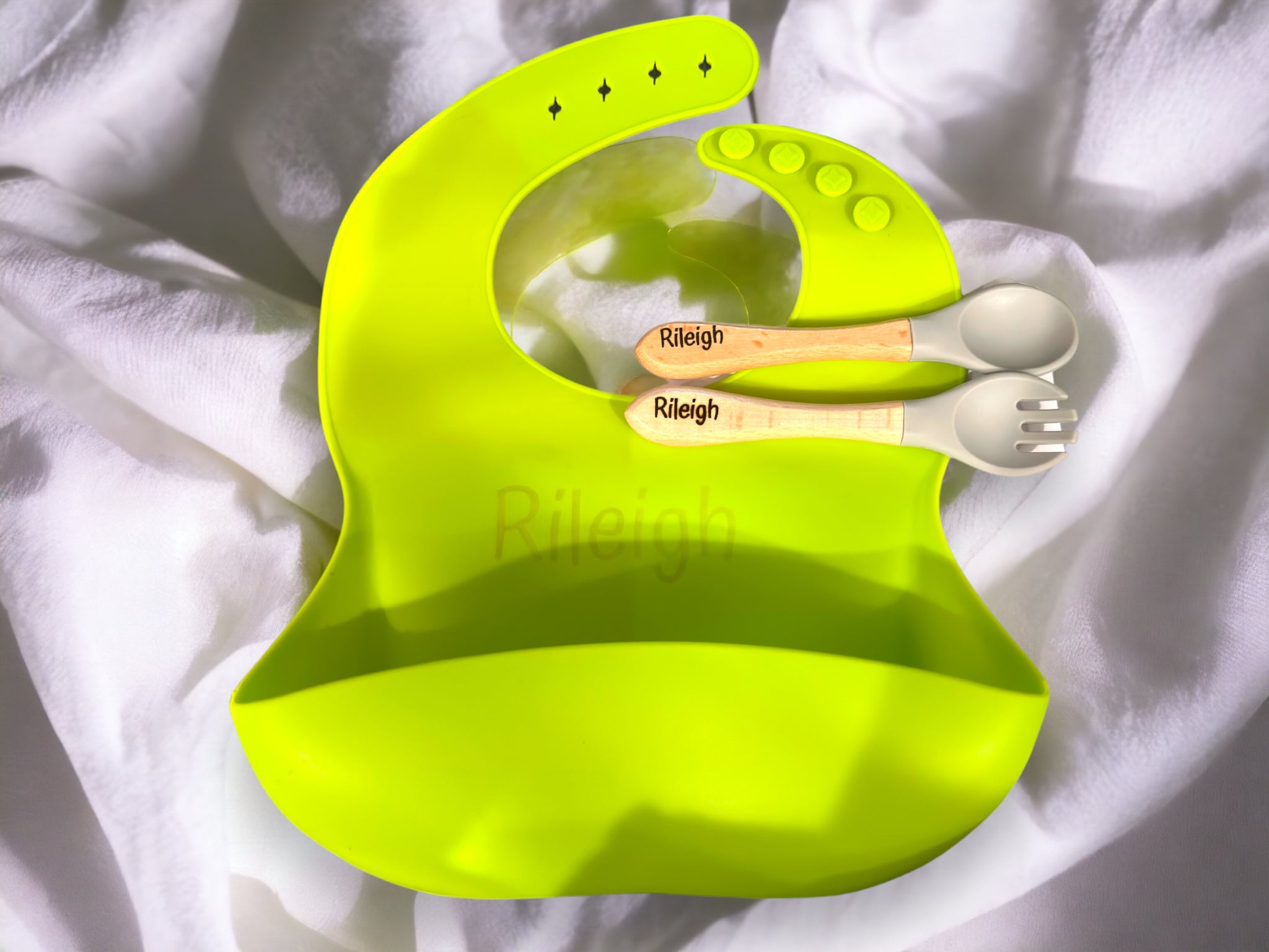 This personalized silicone baby bib makes a beautiful gift for a new mom, as a birthday present for a baby/toddler, or just as an addition to your baby's feeding accessories.