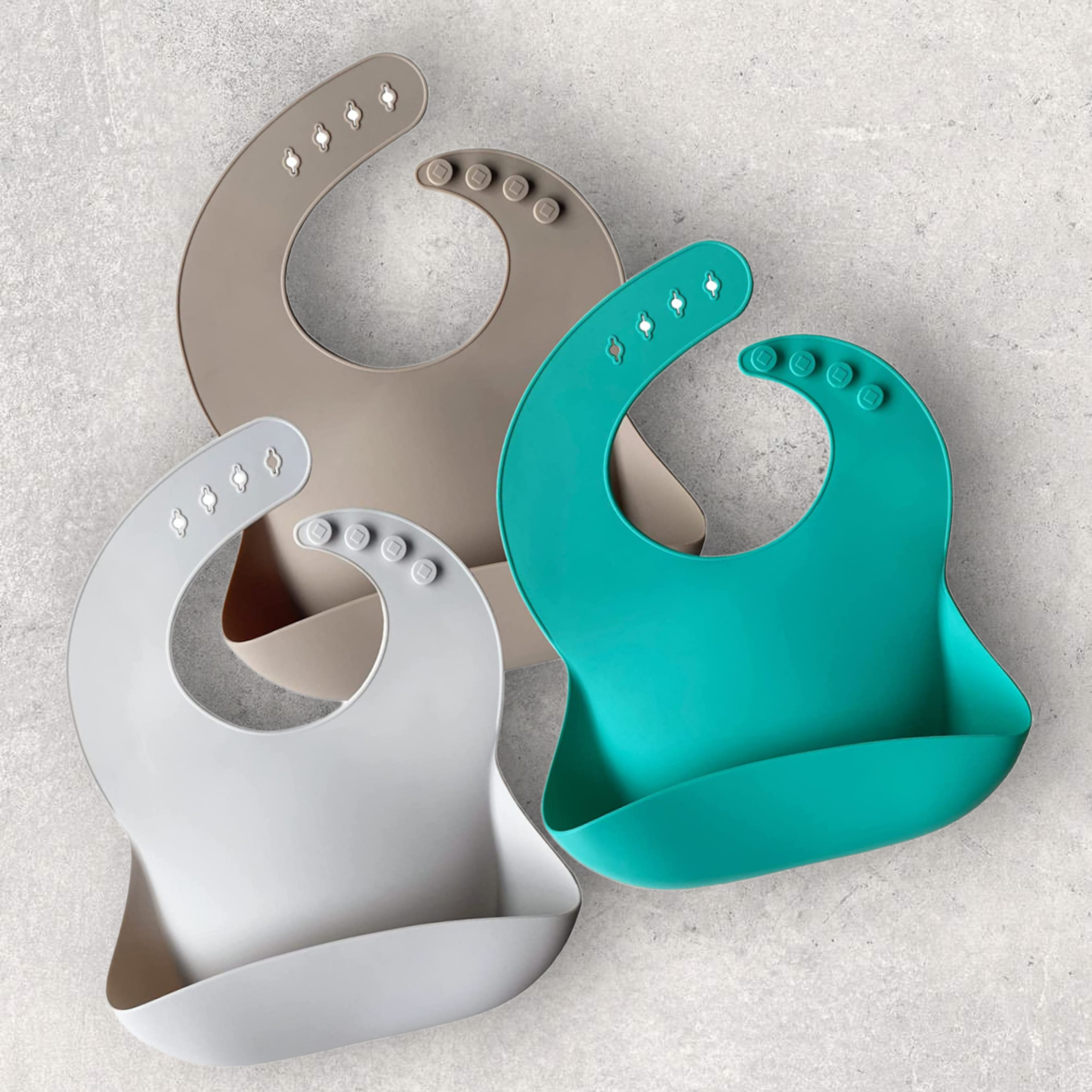 These bibs are easy to clean with soap and water. Dishwasher safe (top rack only.)