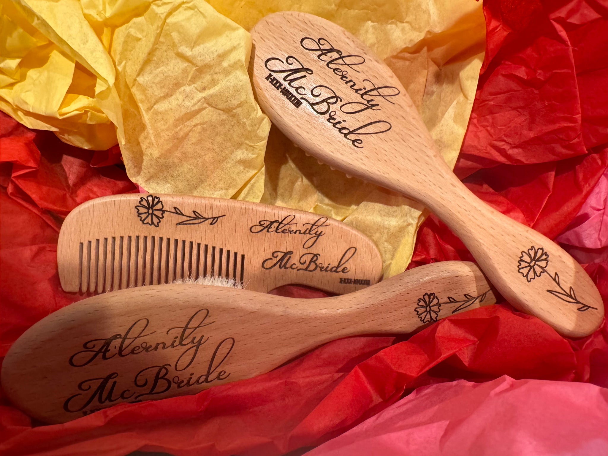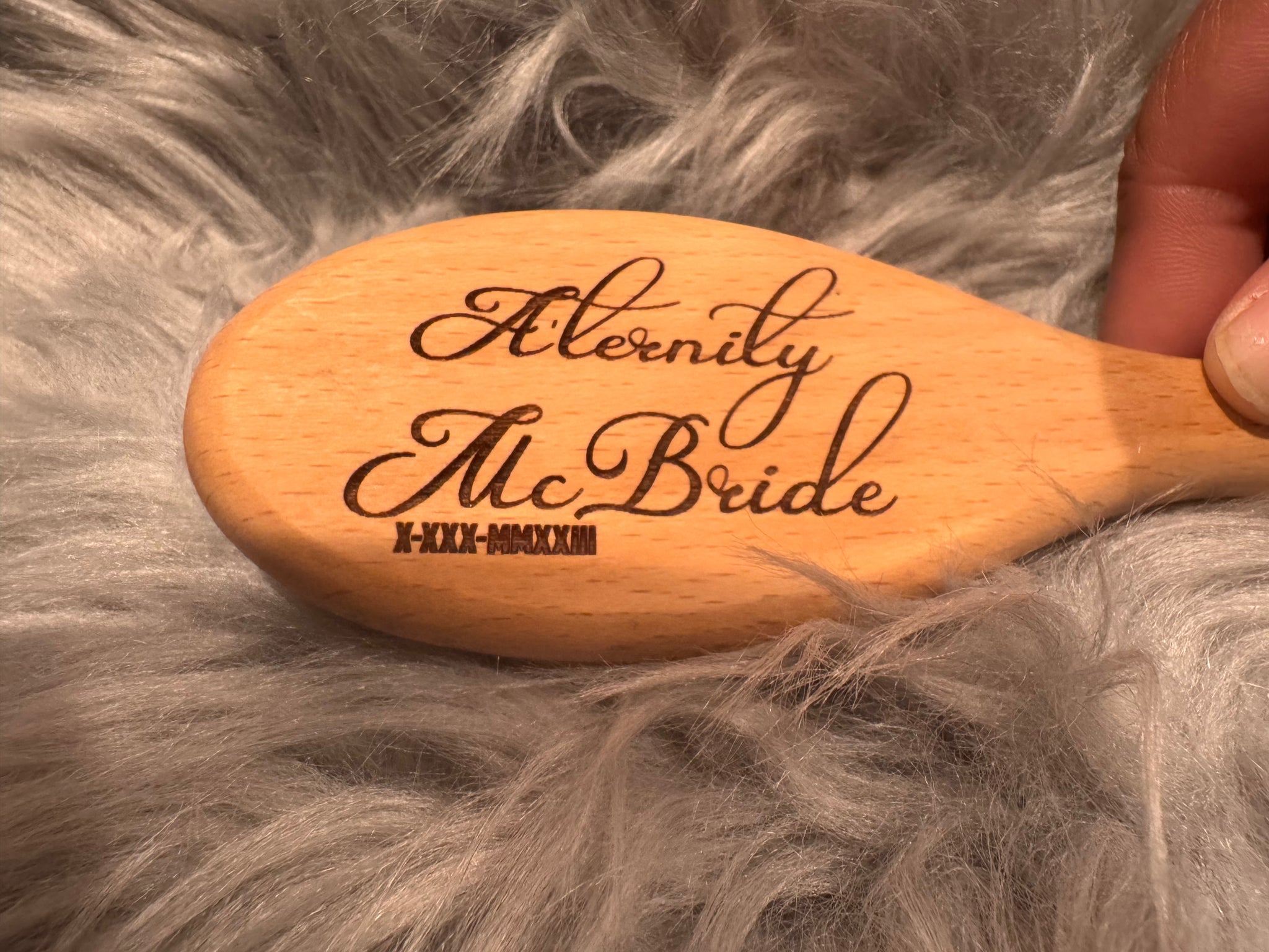 This brush is crafted with natural beech wood and boasts incredibly soft goat hair bristles, specifically designed to be gentle and delicate on your baby's skin.