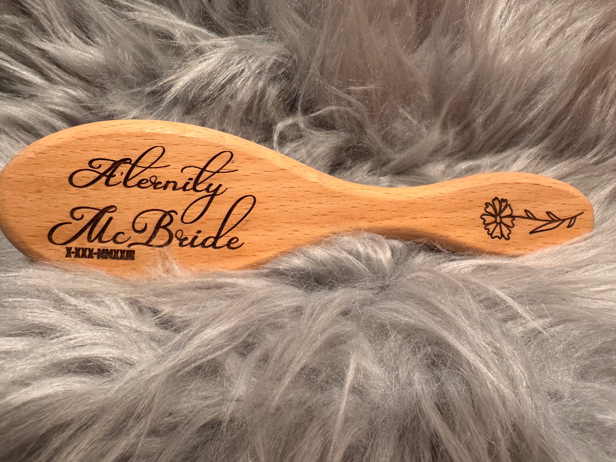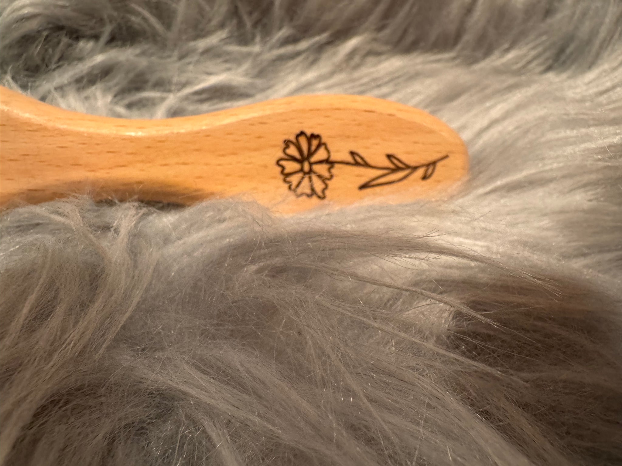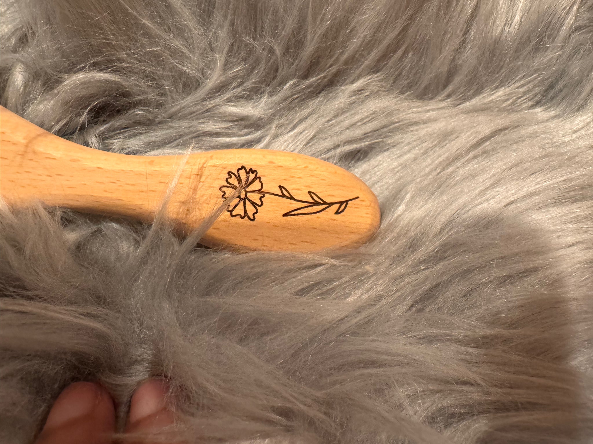 The goat hair brush is made with beech wood and has very soft goat hair bristles, which are super gentle on the baby's delicate skin.